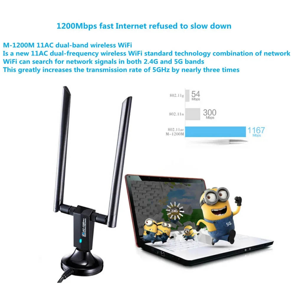 Comprar LccKaa 1200Mbps USB 3,0 adaptador WiFi de doble banda AC1200 inalámbrico USB Wifi Lan Dongle 2,4G/5Ghz antena receptora de Wi-Fi tarjeta de red