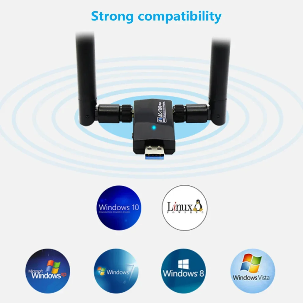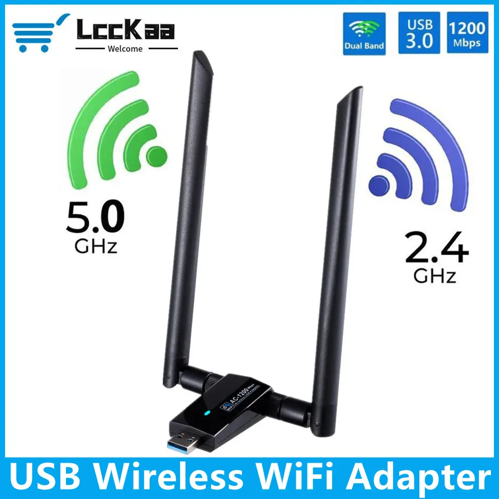 Comprar LccKaa 1200Mbps USB 3,0 adaptador WiFi de doble banda AC1200 inalámbrico USB Wifi Lan Dongle 2,4G/5Ghz antena receptora de Wi-Fi tarjeta de red