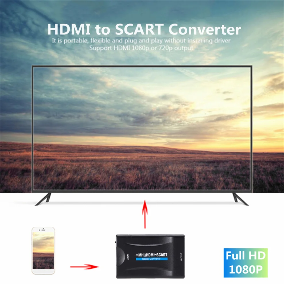 Comprar LccKaa Adaptador convertidor exclusivo compatible con HDMI, SCART Video Audio, HDTV DVD Sky Box STB Plug and Play con Cable de alimentación