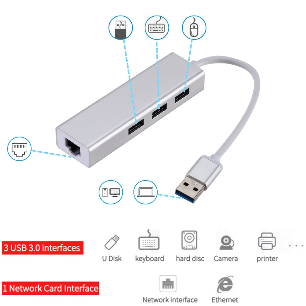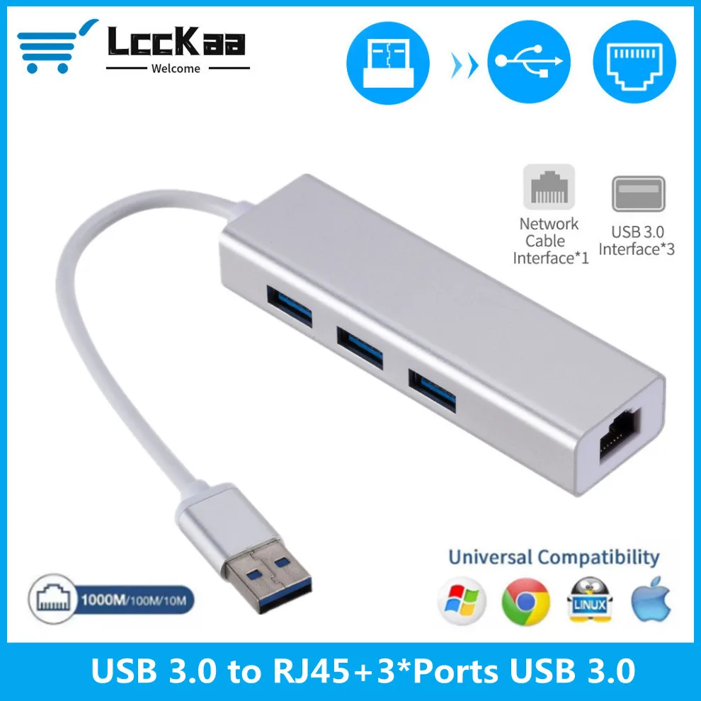 Comprar LccKaa-adaptador Ethernet USB 3,0 a RJ45 HUB para Xiaomi Mi Box 3/S, tarjeta de red USB 10/100/1000 Lan