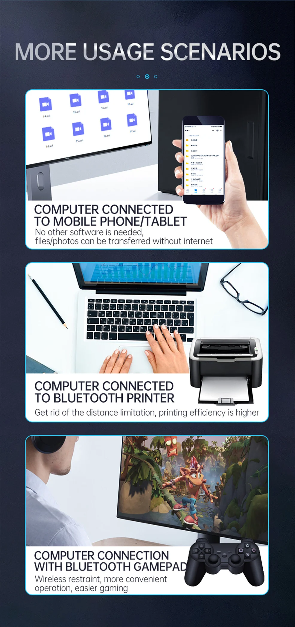 Dispositivos inalámbricos como teclado, ratón, altavoz, algunos auriculares (si desea conectar el auricular, tenga cuidado al comprar, es posible que algunas versiones no funcionen), impresoras, GamePad y más