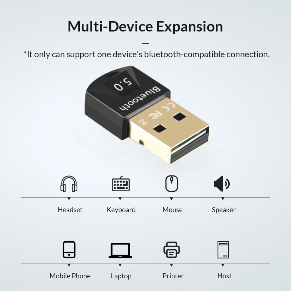 1. Adaptador mini USB Bluetooth 5,0 con alta velocidad de hasta 3Mbps.