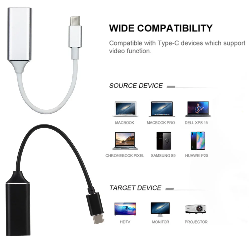 El adaptador USB C a HDMI puede conectar su computadora portátil o teléfono móvil con puerto USB C (compatible con el modo DP Alt) a la pantalla HDMI, TV o proyector, admite transmisión sincrónica de audio y video 4K, en la pantalla grande.