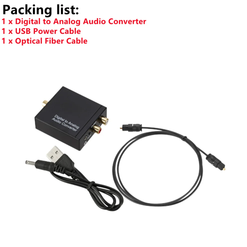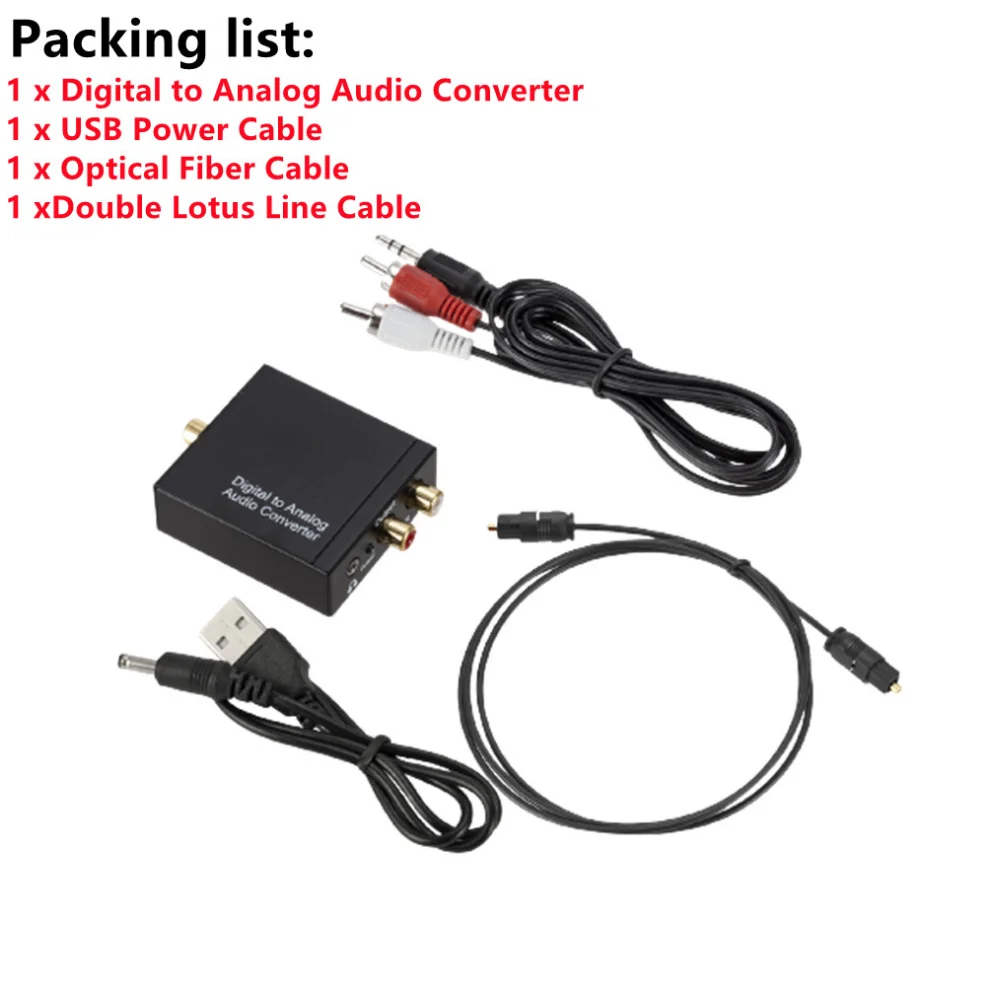 -Conector de entrada de audio: 1 x Toslink, 1 x RCA (coaxial); Conector de salida de audio: 2 x RCA(R/L), 1 x conector de 3,5mm; cable de alimentación USB aangedreven door de 5,5mm (el adaptador de corriente es NIET Inbegrepen); gebruik Geen Andere Stekkers, Het Kan Alleen Gebruik 5V 1APluk.
