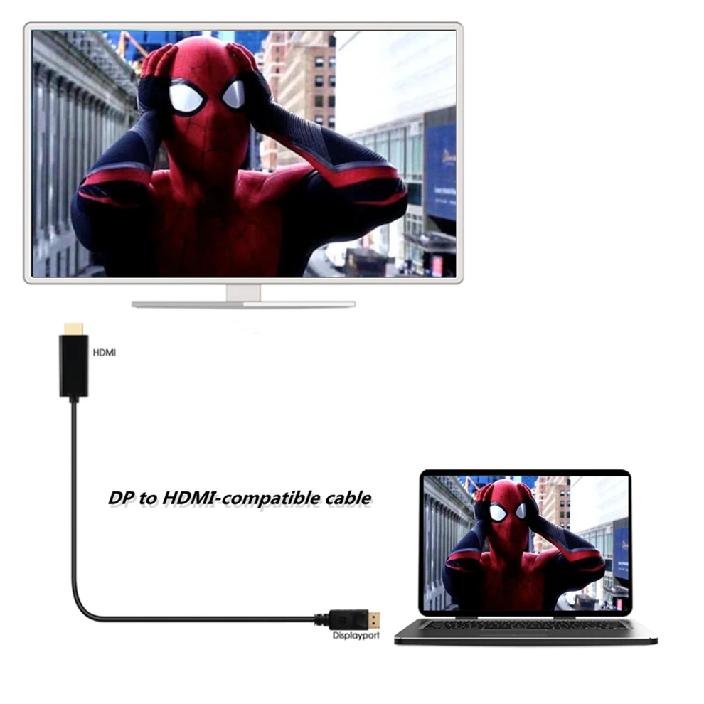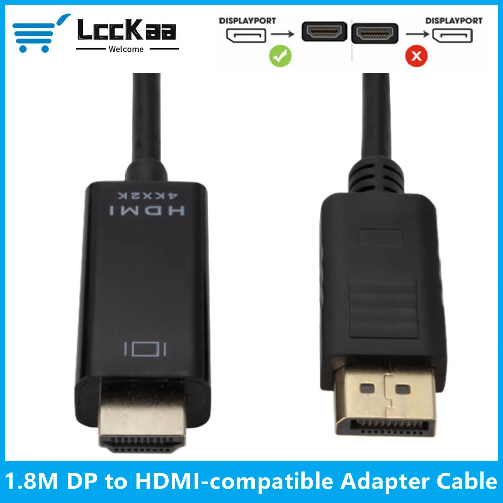 Comprar LccKaa-Cable adaptador DisplayPort compatible con 4K a HDMI, convertidor de Audio y vídeo HD de 1,8 M DP a HDMI para PC, TV, proyector y portátil