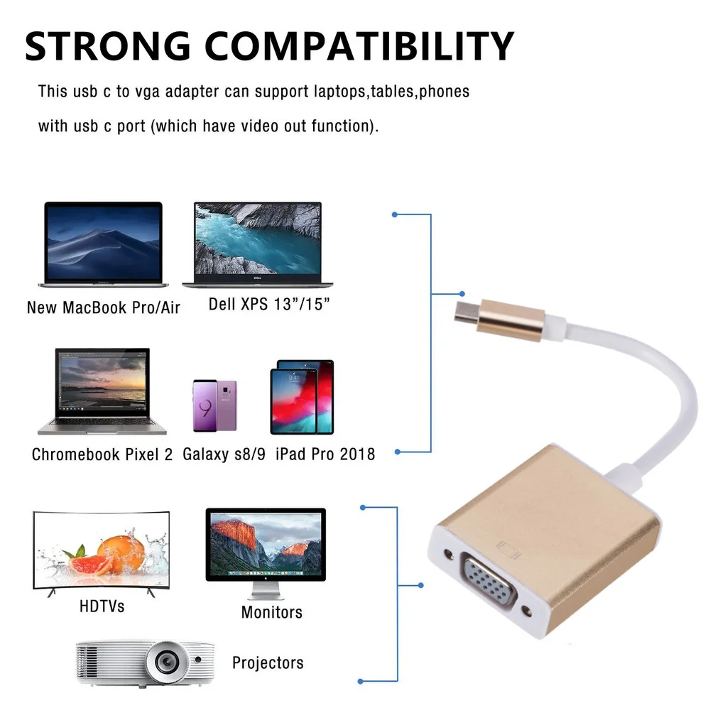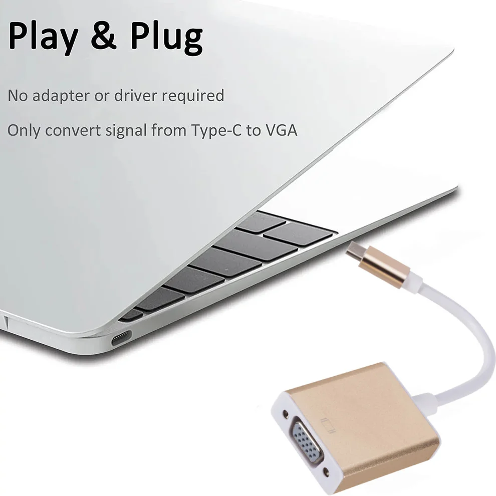 Comprar LccKaa-Cable adaptador tipo C a VGA, adaptador macho a hembra, USB-C para Macbook, 12 pulgadas, Chromebook Pixel, Lumia 950XL