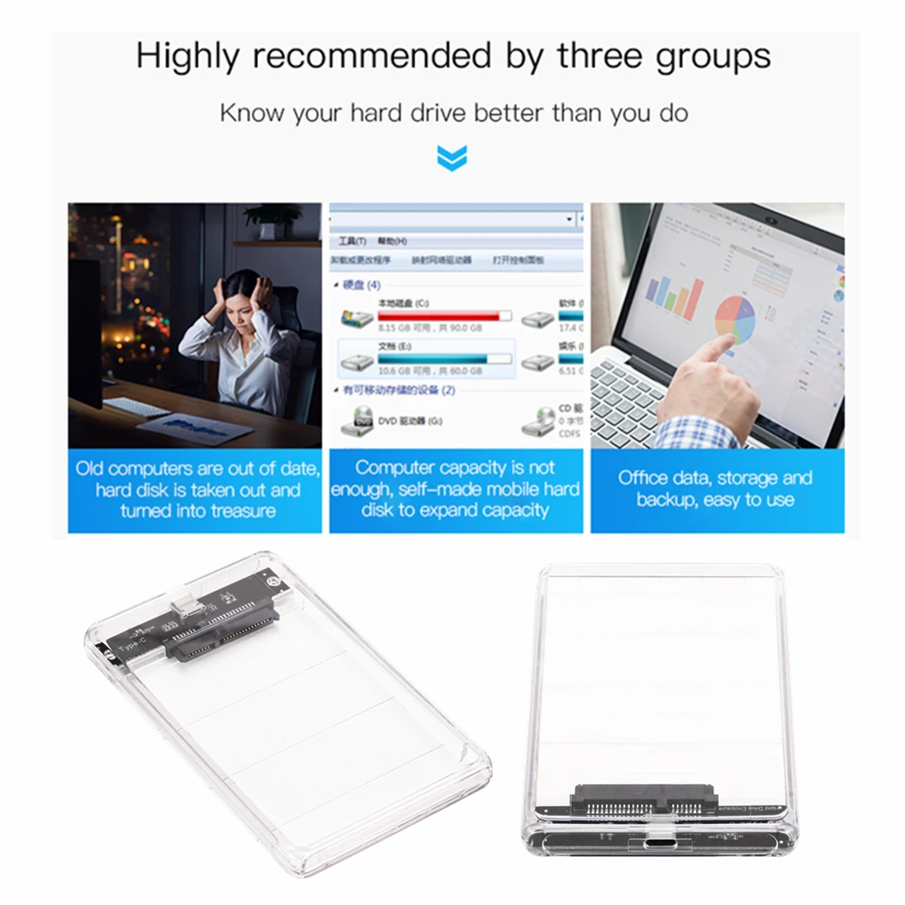 Comprar LccKaa-carcasa transparente USB 3,0 tipo C para disco duro externo SSD, caja/carcasa 2,5 HD Optibay SATA a USB 6gbps