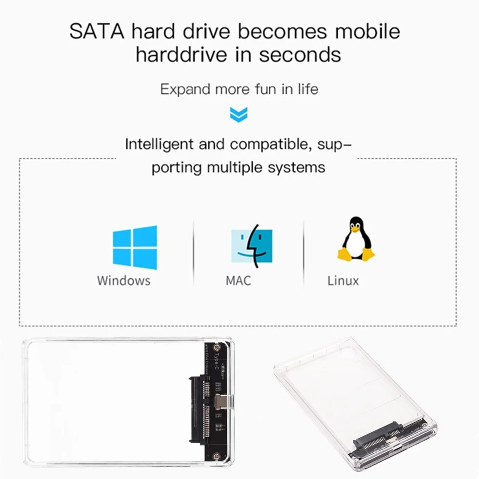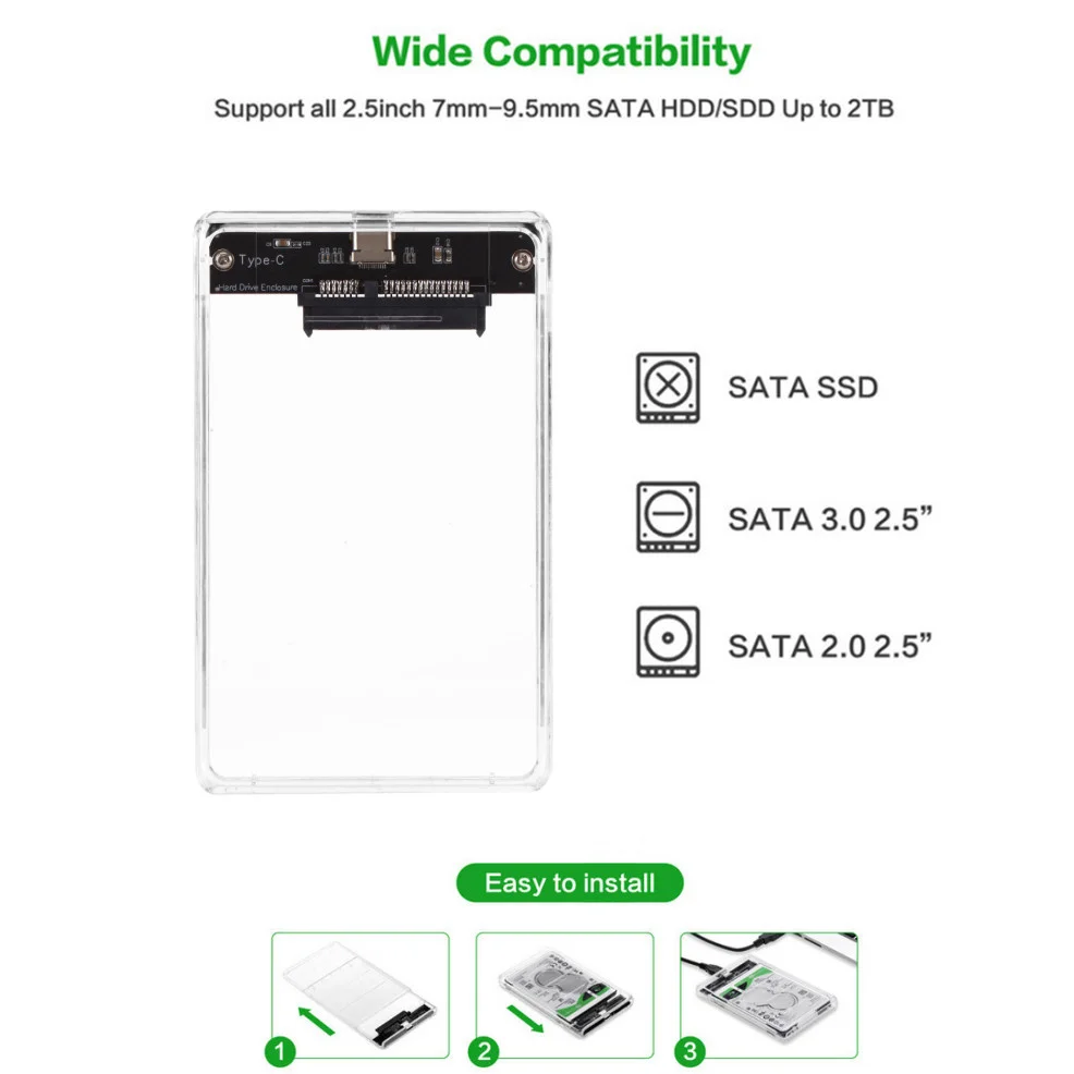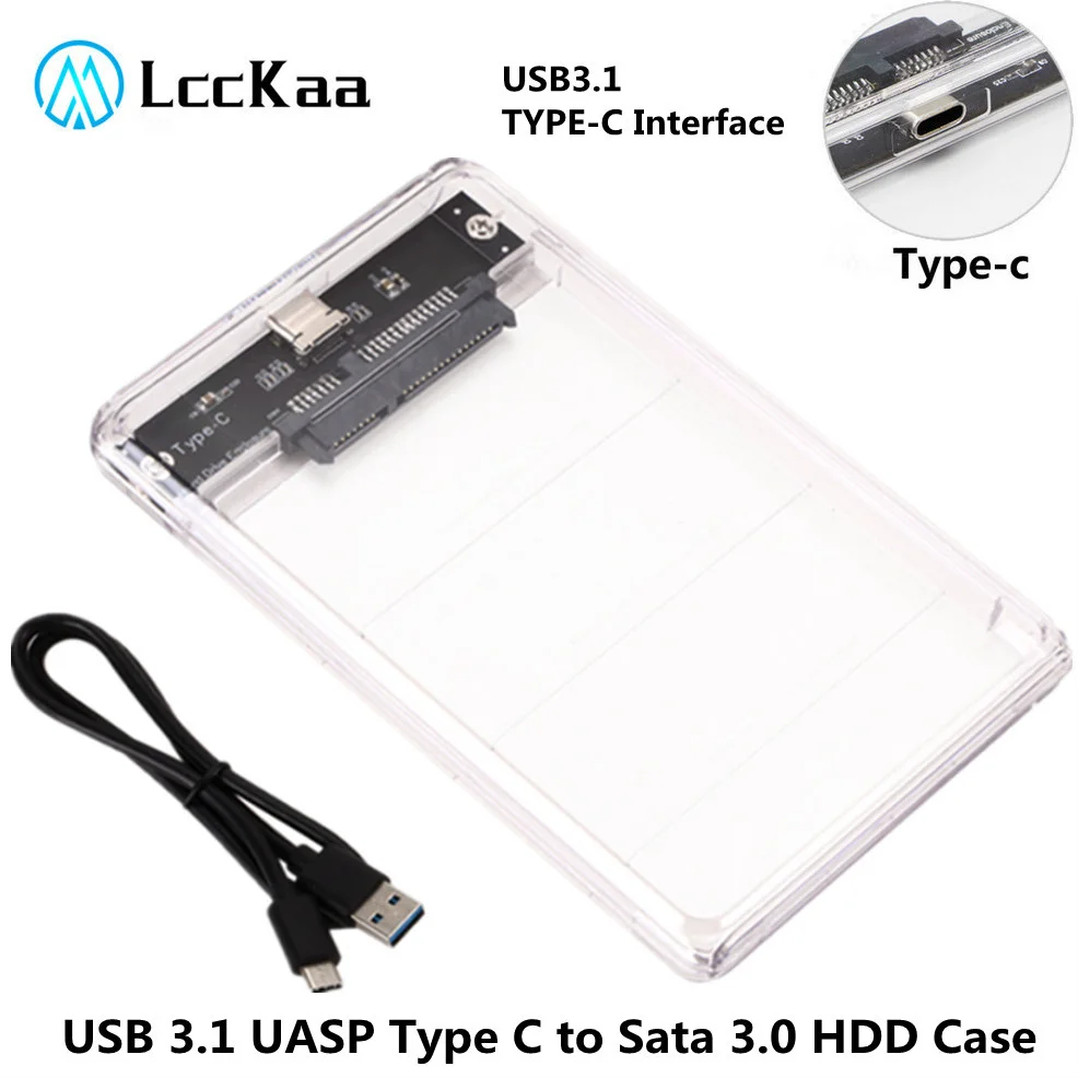 Comprar LccKaa-carcasa transparente USB 3,0 tipo C para disco duro externo SSD, caja/carcasa 2,5 HD Optibay SATA a USB 6gbps