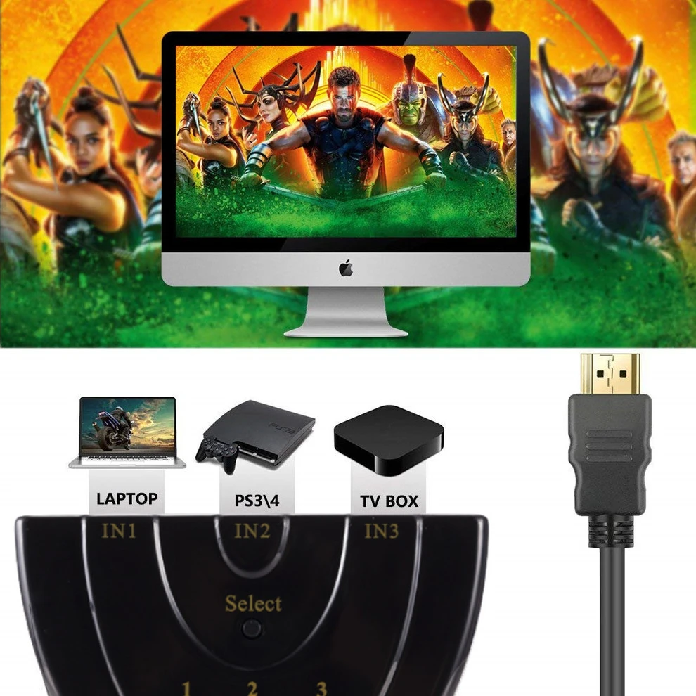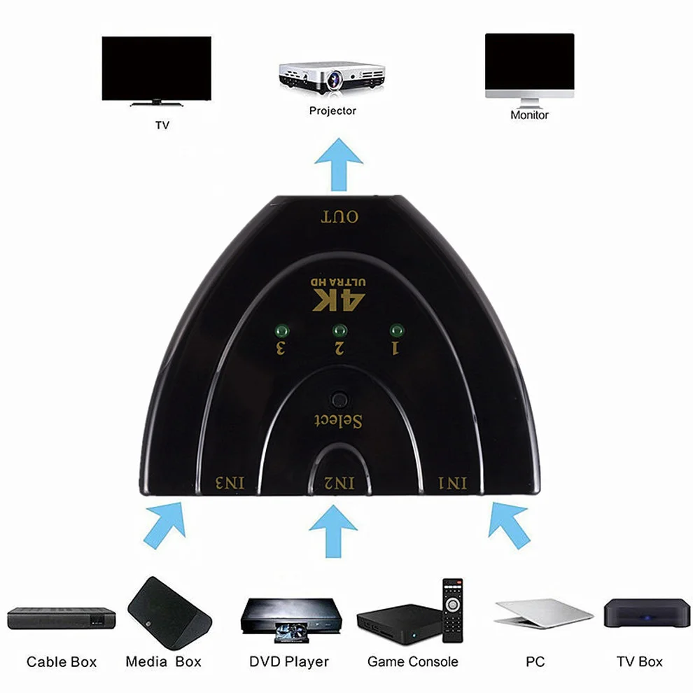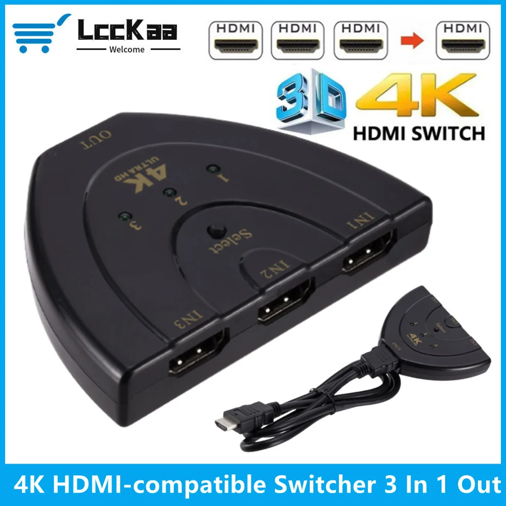 Comprar LccKaa-conmutador compatible con HDMI, 3 puertos, 4K, HD, 3 en 1, Selector divisor, compatible con 3D para ordenador portátil, TV Box, PS3, PS4, DVD, HDTV, Xbox, PC
