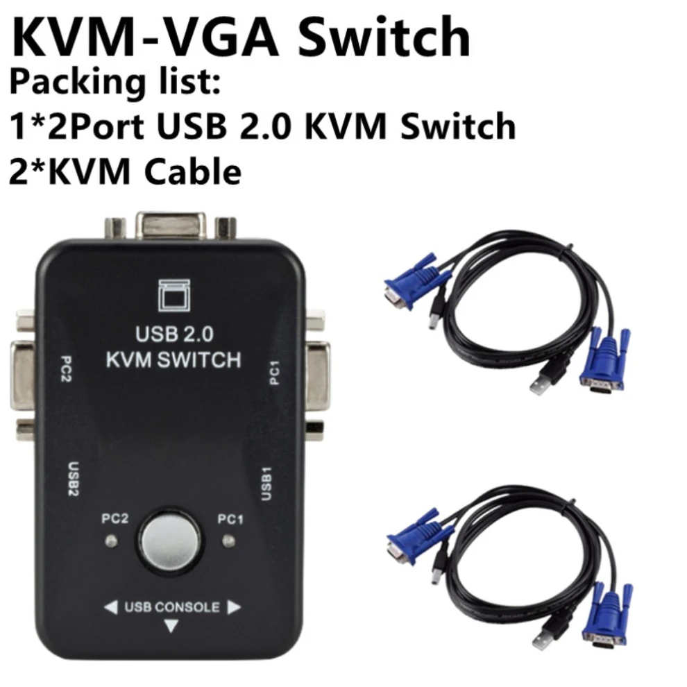 Comprar LccKaa-conmutador KVM USB 2,0, caja de 2 puertos, VGA, SVGA, USB, KVM, ratón, teclado, 1920x1440