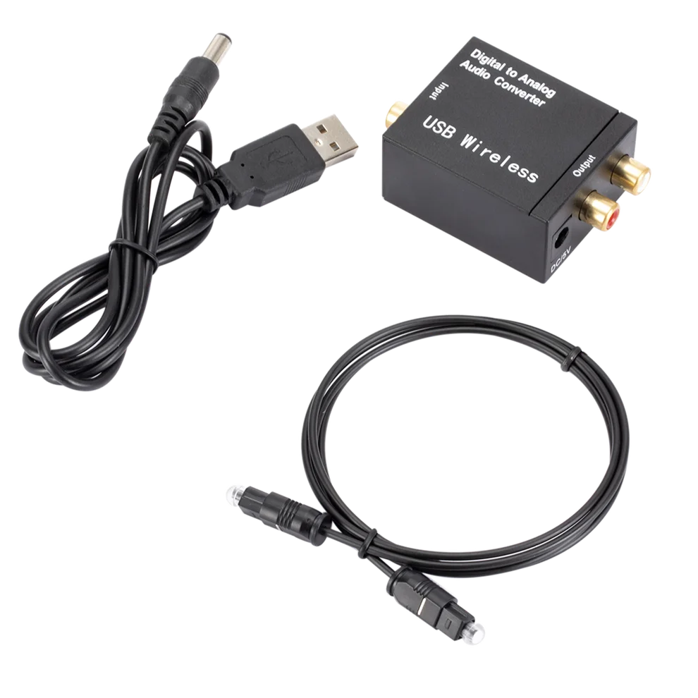 Convierte señales de audio digitales coaxiales, bluetooth o Toslink en audio analógico L/R