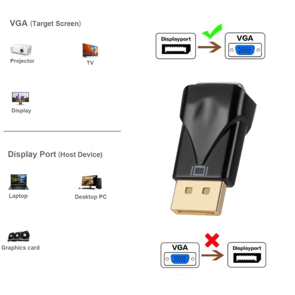 Comprar LccKaa-convertidor DisplayPort a VGA, adaptador DP a VGA 1080P, adaptador macho a VGA hembra para Monitor HDTV, MacBook, proyector, PC