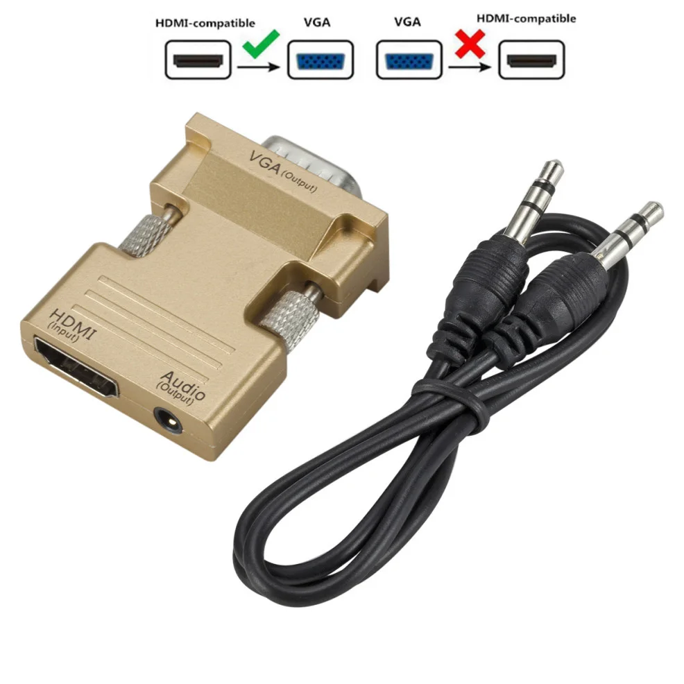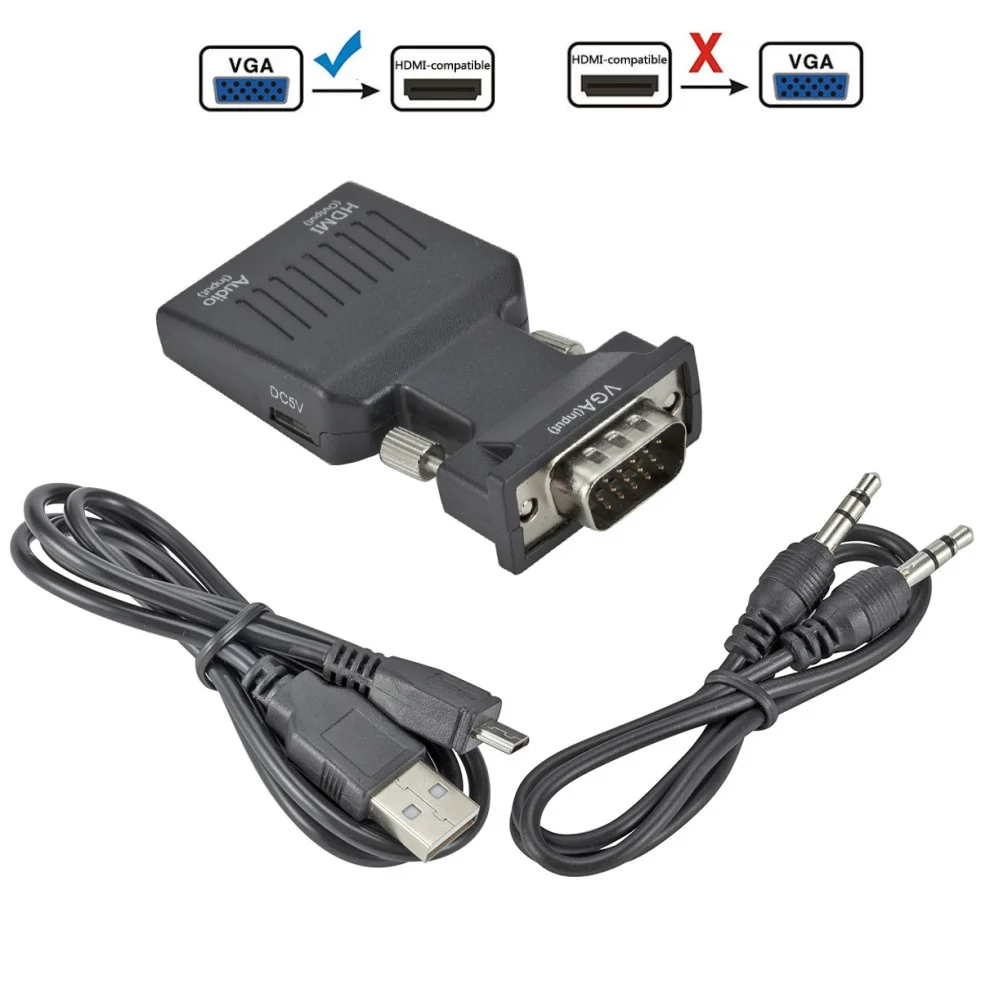 Comprar LccKaa-Convertidor de VGA a HDMI, adaptador compatible con 1080P, adaptador HDMI a VGA para PC, portátil a proyector HDTV, convertidor de Audio y Video