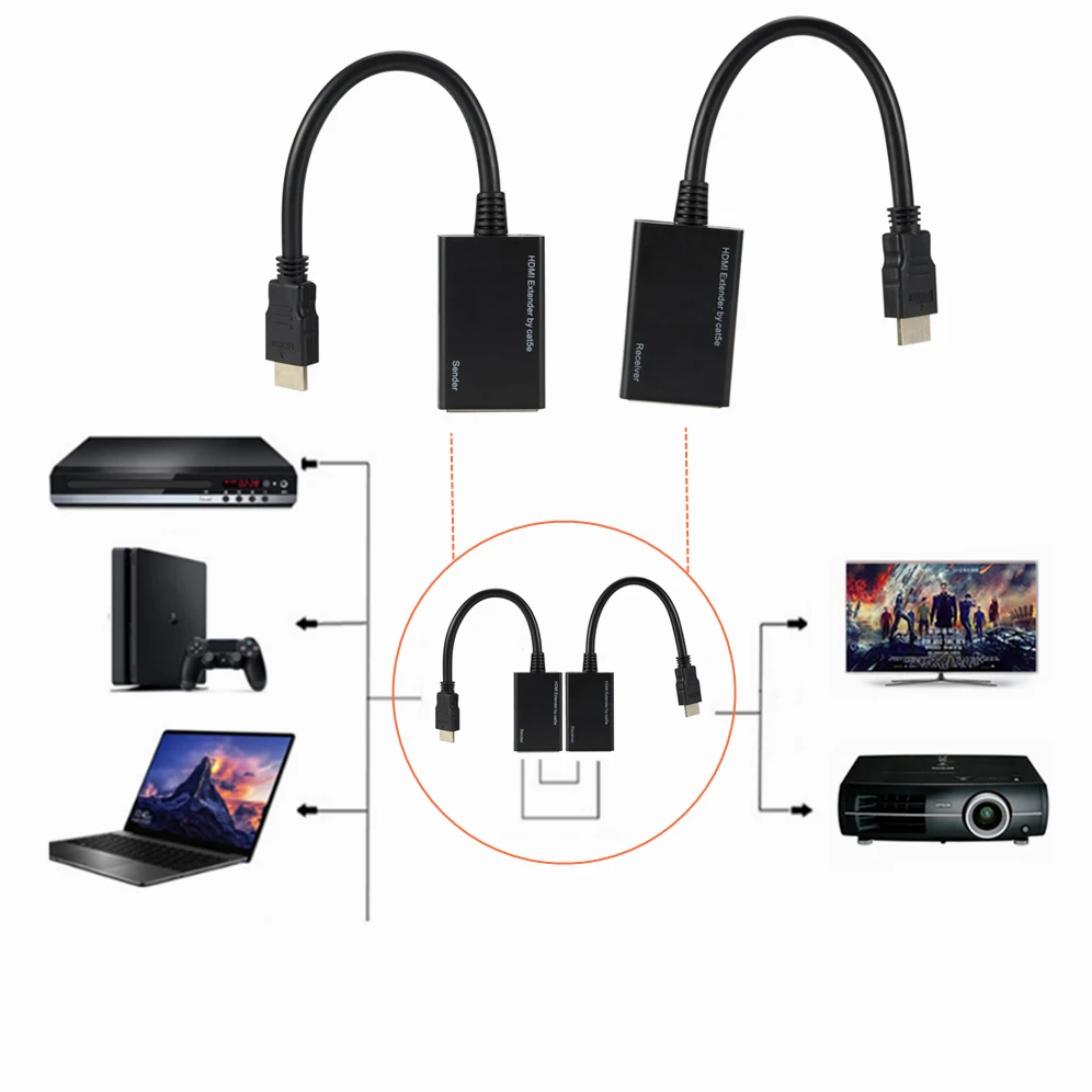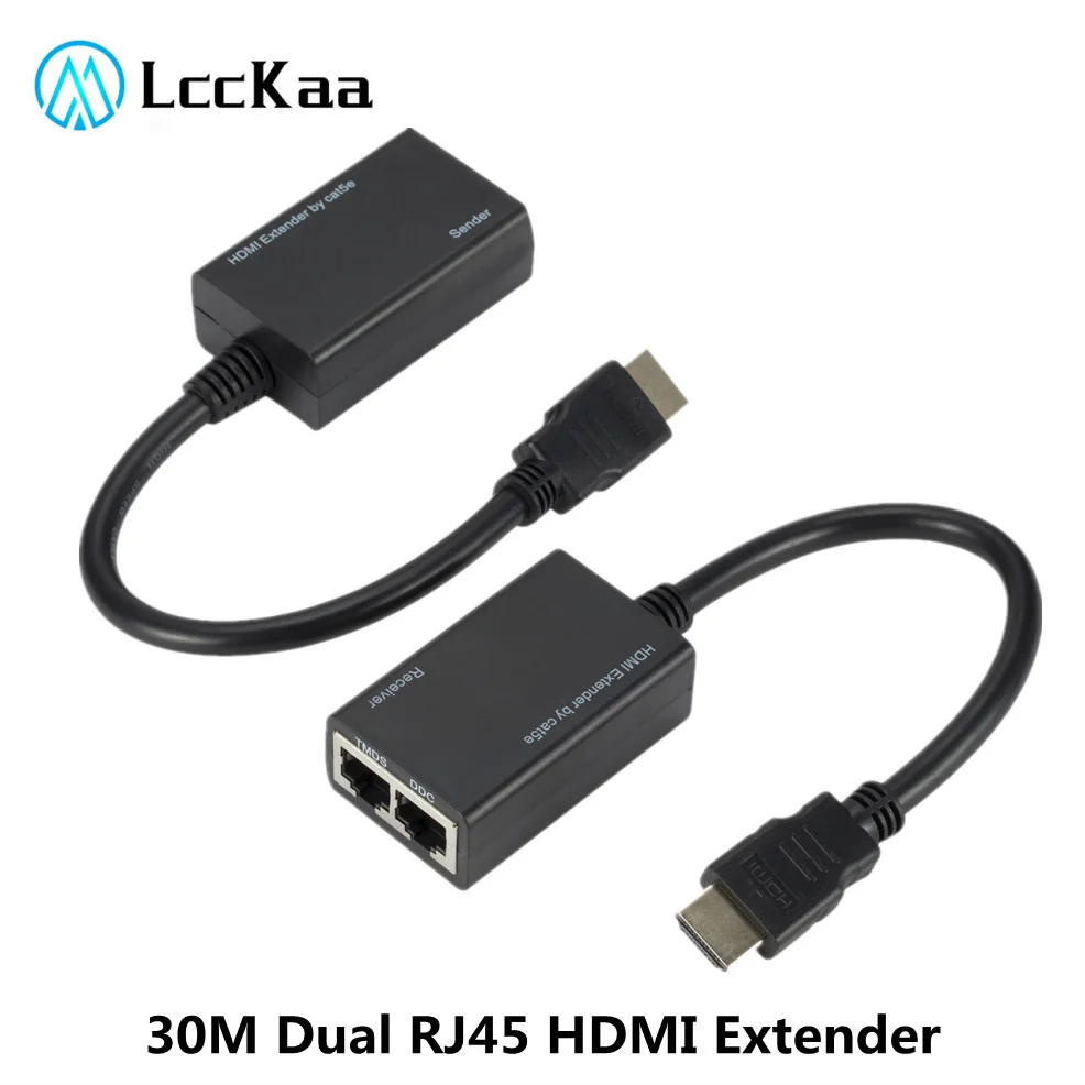 Comprar LccKaa-extensor de Ethernet 1080P HDMI compatible con RJ45 CAT5e CAT6 UTP LAN, repetidor de hasta al menos 100 pies (30M)