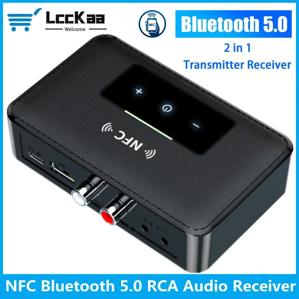 Comprar LccKaa-receptor y transmisor de Audio RCA con Bluetooth 5,0, adaptador inalámbrico de música con conector AUX de 3,5mm y micrófono NFC para altavoces de TV y coche