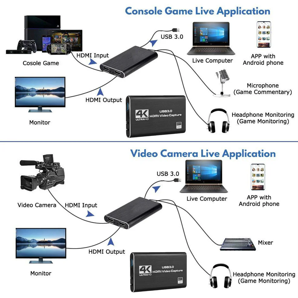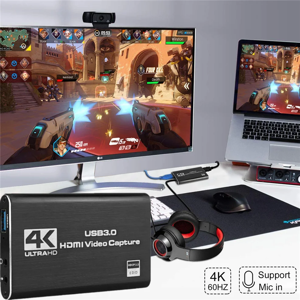 Comprar LccKaa-tarjeta de captura de vídeo 4K, grabadora de vídeo HD 3,0 P, compatible con HDMI, USB 1080, para OBS, captura de tarjeta de juego, transmisión en vivo