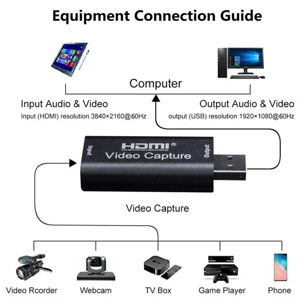 Comprar LccKaa-tarjeta de captura de vídeo 4K, USB 2,0, HDMI, grabador de vídeo para PS4, videocámara de DVD, grabación de cámara, placa de vídeo, transmisión en vivo