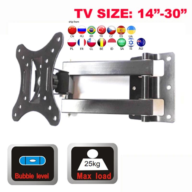 Comprar LCD-123 de montaje en D para tv, soporte de pared plegable de acero, retráctil, VESA, 75x75, 100x100, 25kg, 14 "-30", 27 ", 2 brazos