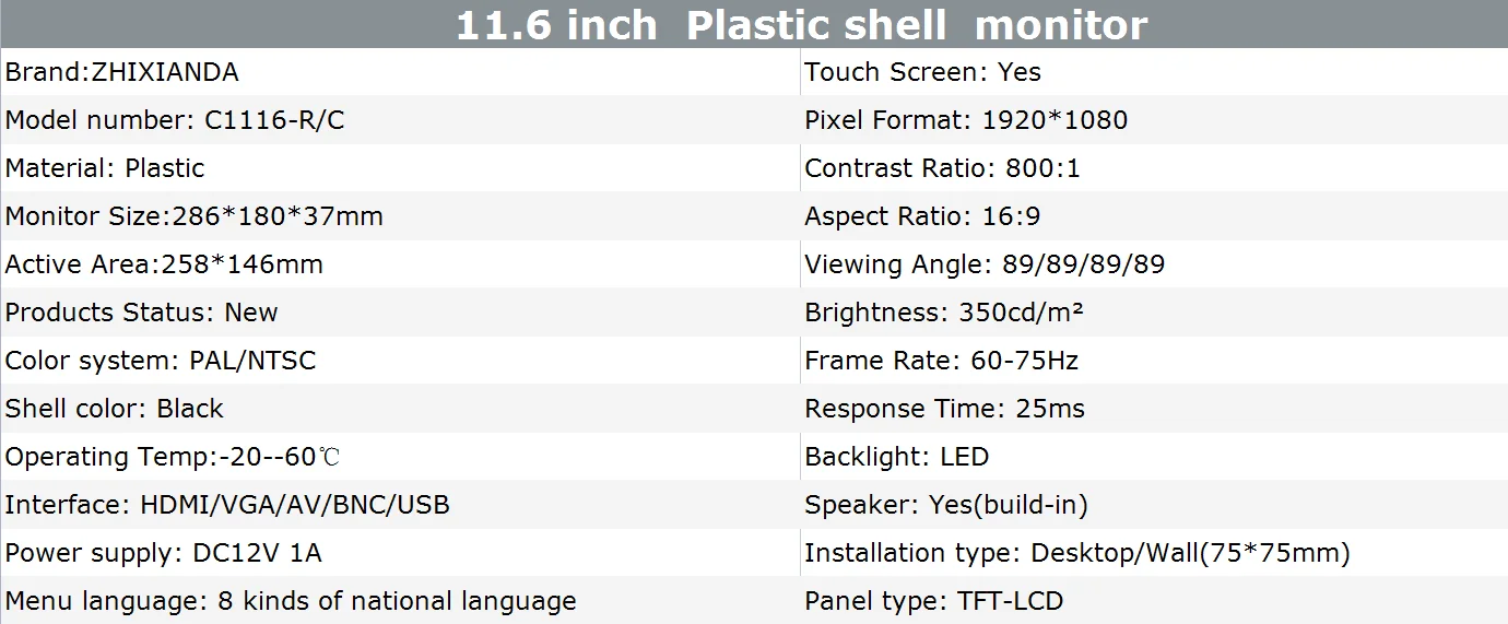 Comprar LCD de alta resolución 16:9 de 11,6 pulgadas con altavoz incorporado e interfaz USB HDMI VGA