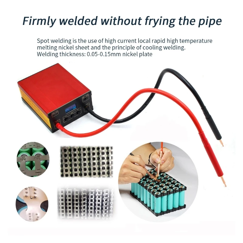 Simple y doble: soldadura por puntos de alta potencia, fácil de soldar por puntos continuamente. Hoja niquelada de 0,1-0,15mm. Portátil y compacto: pequeño y cómodo de transportar sin necesidad de montar un mini King.