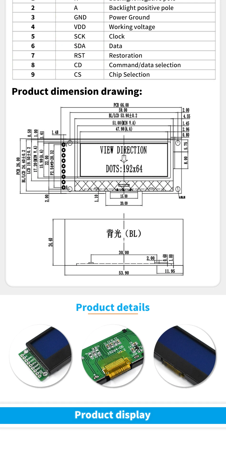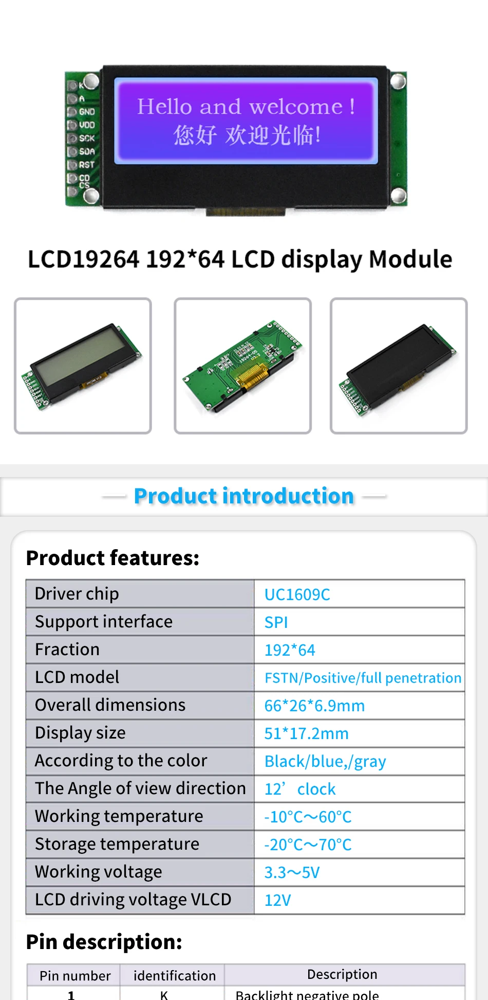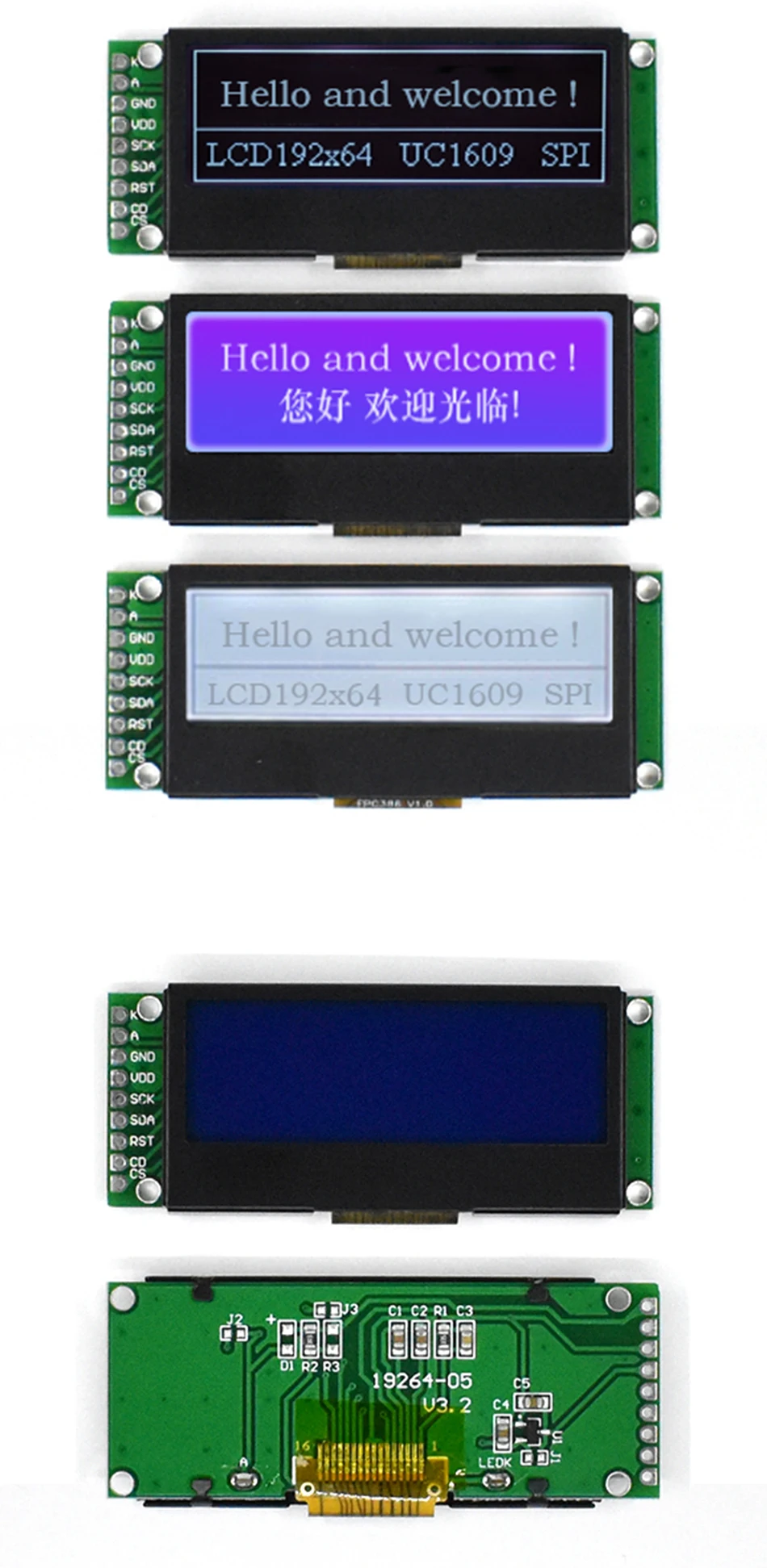 Comprar LCD19264 192*64 192X64 pantalla de visualización del módulo LCD de matriz gráfica 3,3-5V LCM controlador UC1609C incorporado con retroiluminación LED