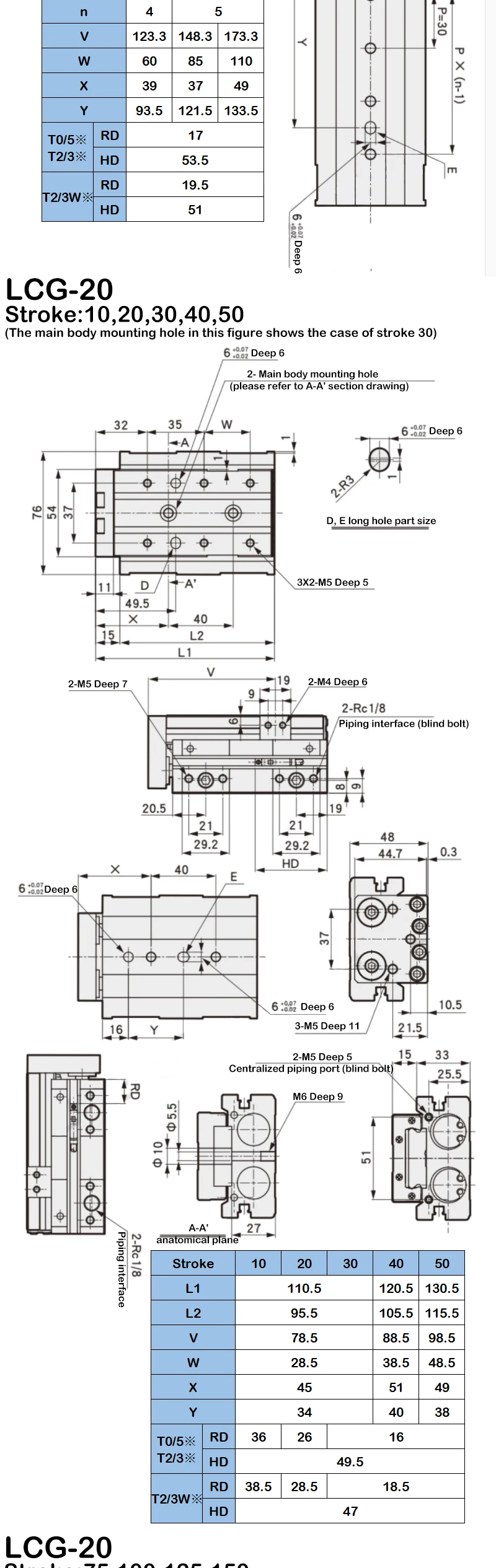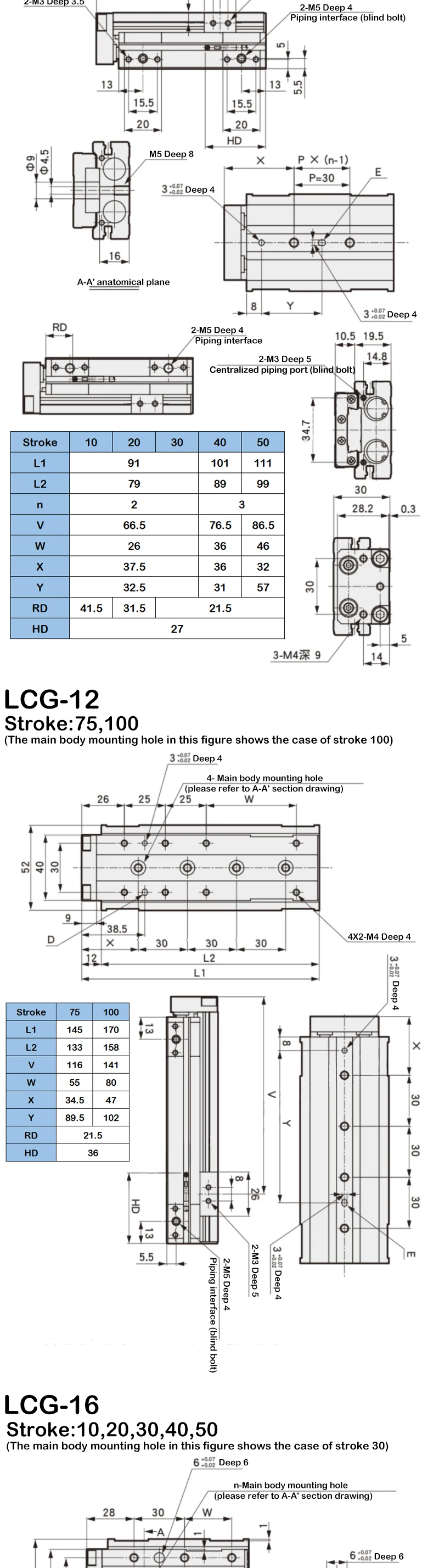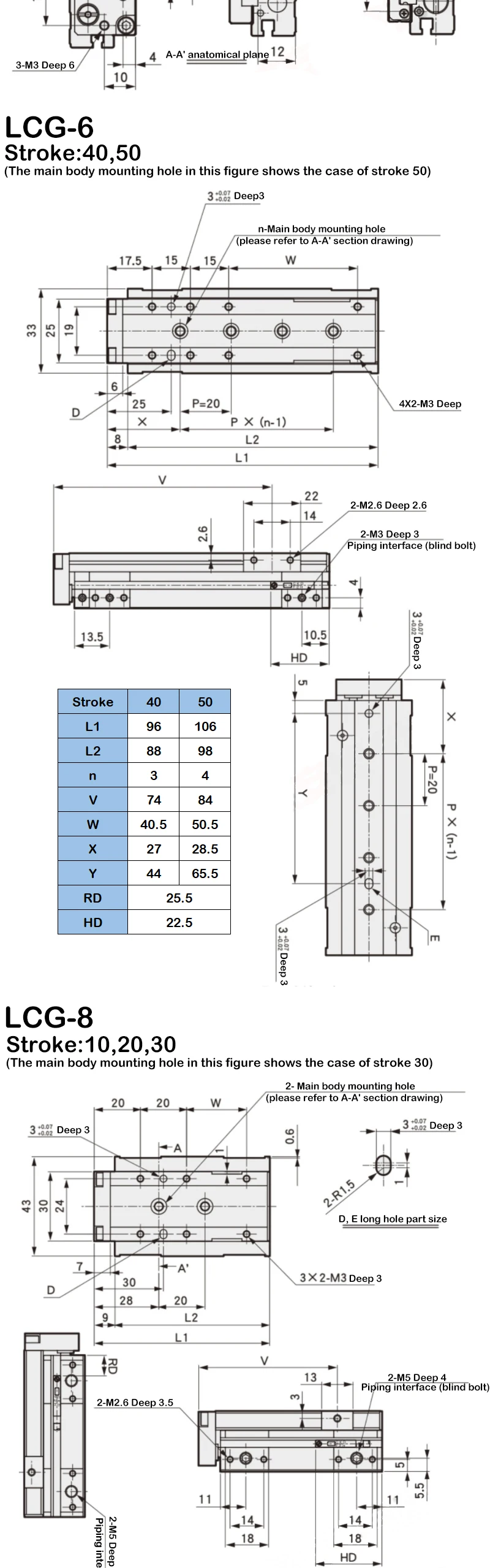 LCG6 8 12-10 20 30 40 50 75 100 mm de carrera Mesa deslizante de doble efecto Cilindro lineal neumático de aire