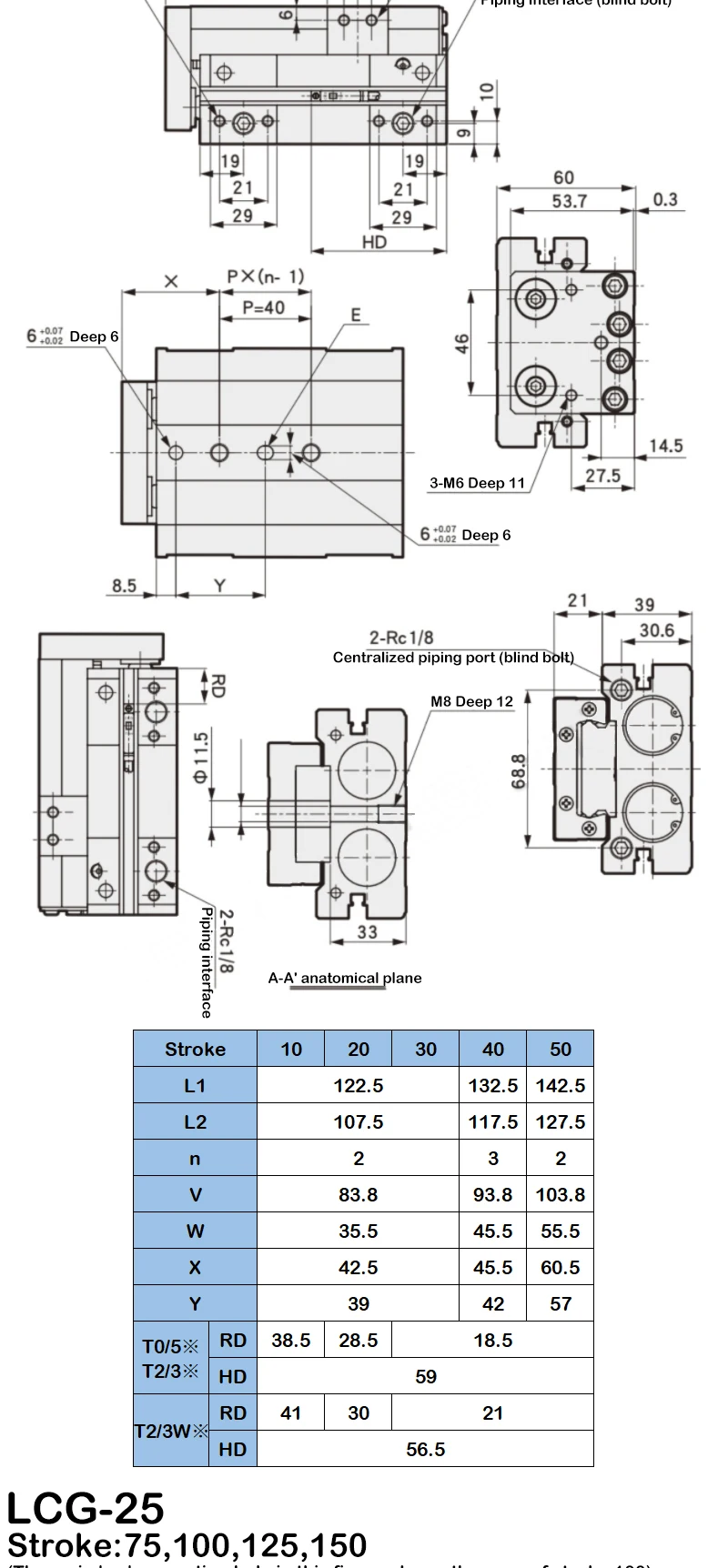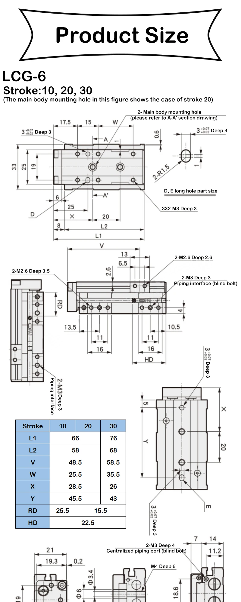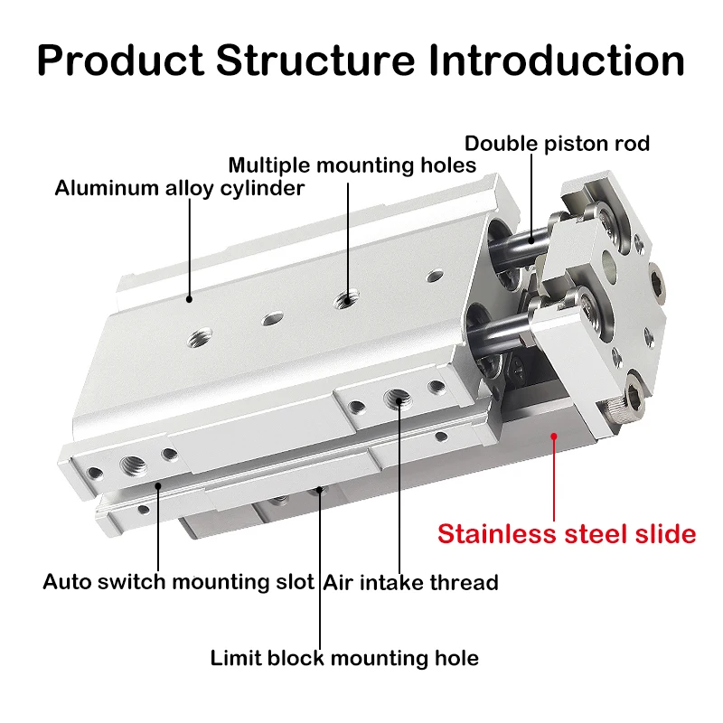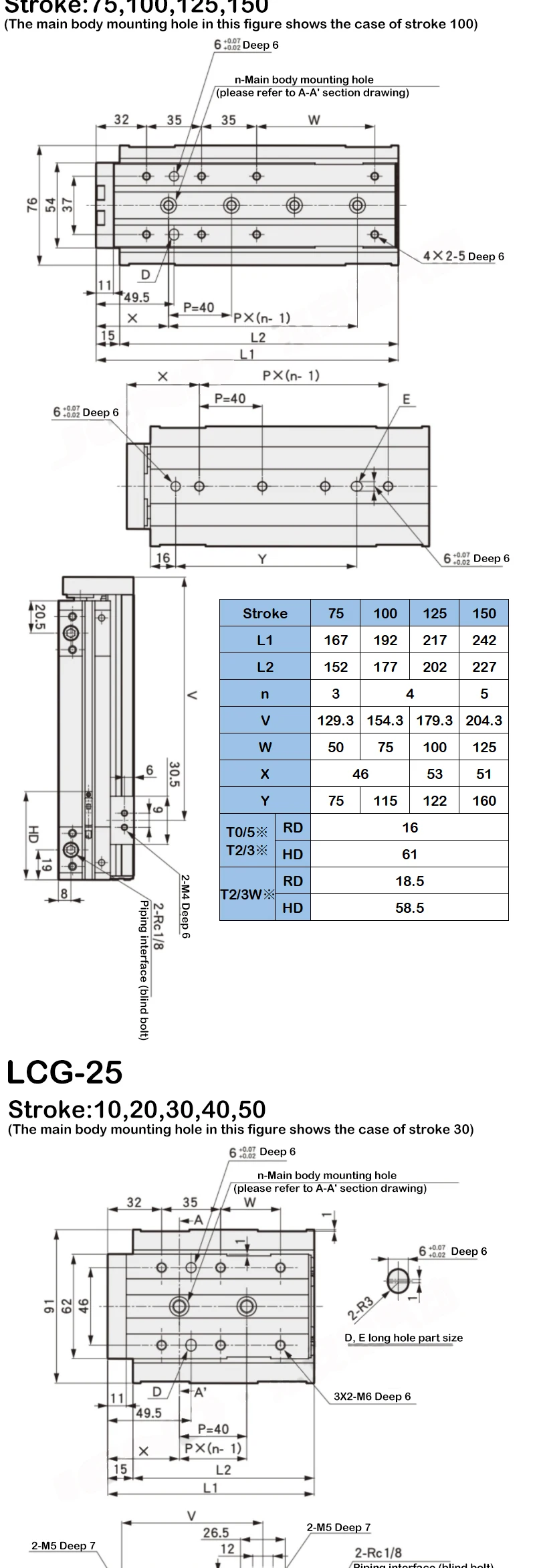 LCG6 8 12-10 20 30 40 50 75 100 mm de carrera Mesa deslizante de doble efecto Cilindro lineal neumático de aire