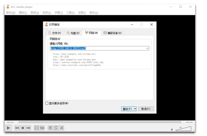 Conecte la cámara, asegúrese de que la conexión sea normal después del encendido, el sistema identificará automáticamente la cámara. Instale el reproductor VLCmedia y abra el software, en- abra los medios de transmisión de red, ingrese, solo vea la dirección IP: RTSP: /192.168.0.158 / live / 0, haga clic en Reproducir para ir a ver la pantalla de la cámara, puede girar la cámara para enfocar.