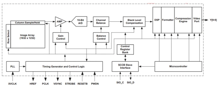 The OV2640 is a 1/4-inch CMOS UXGA (1632*1232) image sensor. The sensor's small size and low operating voltage provide all the features of a single UXGA camera and image processor. Through the SCCB bus control, it can output 8/10-bit image data of various resolutions such as full frame, sub-sampling, zooming and windowing. The UXGA image of this product can reach up to 15 frames per second (up to 30 frames for SVGA and 60 frames for CIF). Users have complete control over image quality, data format and transmission. All image processing functions including gamma curve, white balance, contrast, chroma, etc. can be programmed via the SCCB interface. Image Sensors use unique sensor technology to improve image quality and reduce sharp and stable color images by reducing or eliminating optical or electronic defects such as fixed pattern noise, smearing, and floating.