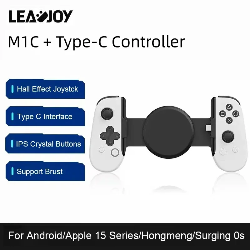 Mando móvil Leadjoy M1C para juegos Android Tipo-C e iPhone 15 com Efeito Hall Sticks Gatilhos, reproducción remota, Xbox Cloud, GeForce Agora, Steam
