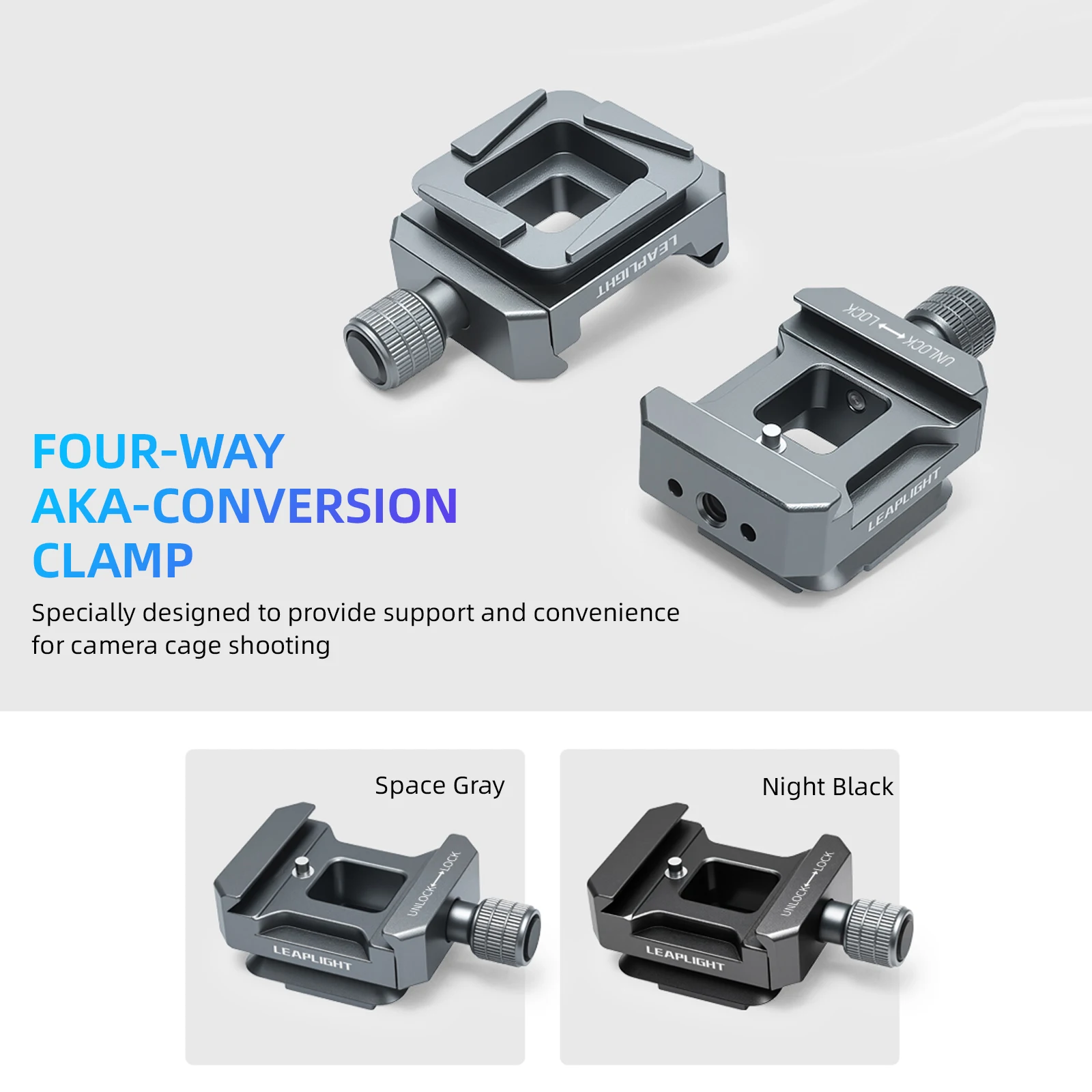 Experimente la máxima libertad con esta abrazadera de placa de liberación rápida de cuatro direcciones.Diseñado para una compatibilidad perfecta con los sistemas Arca Swiss QR, permite que su DSLR, jaula de cámara, trípode, control deslizante, cardán, rótula o monopié cambie las configuraciones en un instante.Diseñado para creadores audaces que exigen velocidad y precisión, este adaptador garantiza que su equipo se mantenga seguro mientras captura cada disparo atrevido sin dudarlo.Eleve su flujo de trabajo y conquiste todos los ángulos con confianza.