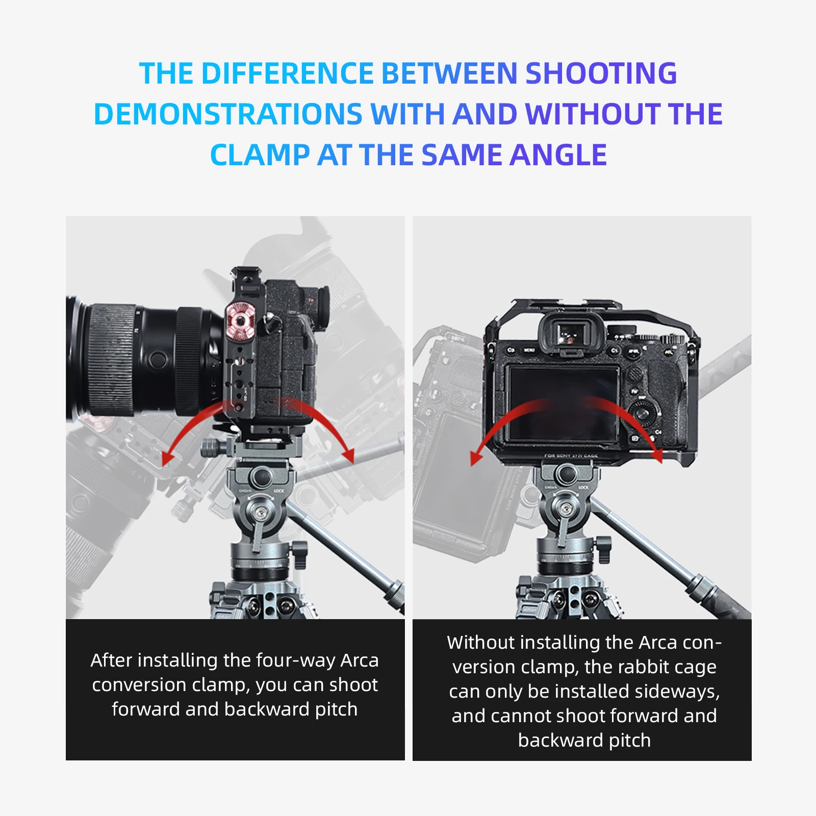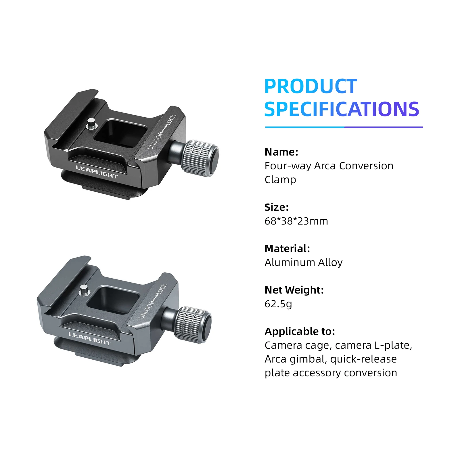 Diseño estable de base Arca de 38 mm: Con un diseño de base Arca de cuatro vías estándar de 38 mm, esta abrazadera de placa de liberación rápida ofrece estabilidad excepcional y capacidades anti-deflexión, lo que la hace adecuada para diversas configuraciones de cámara, incluidas jaulas de cámara DSLR, trípodes y rótulas.