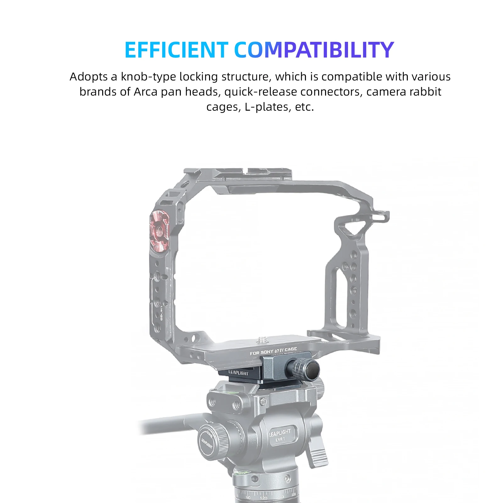 Compatibilidad eficiente: la estructura de bloqueo tipo perilla de la abrazadera de placa de liberación rápida garantiza una compatibilidad eficiente con varias marcas de cabezales Arca, conectores de liberación rápida, placas en L y más.Perfecto para transiciones perfectas entre diferentes soportes de cámara.