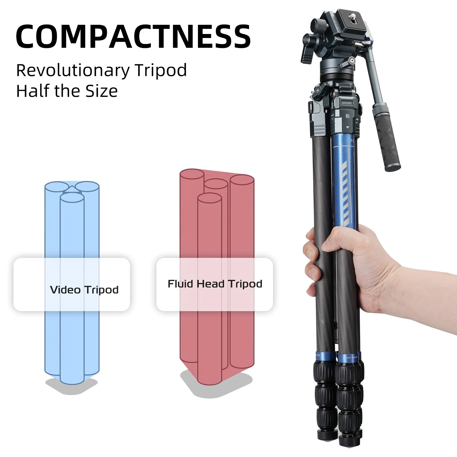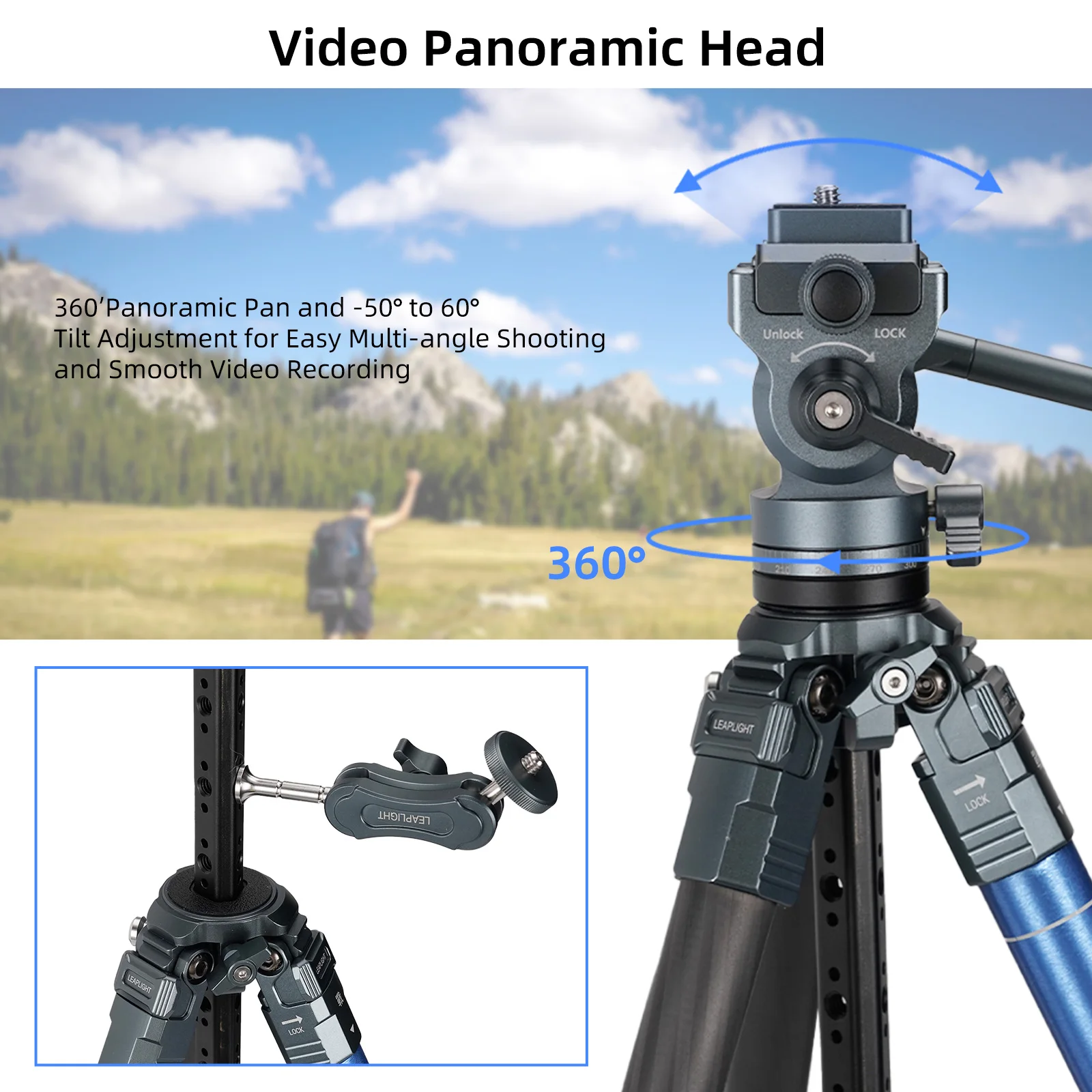 ¡Capture la toma perfecta con nuestro trípode para fotografía con cámara SLR de fibra de carbono!Con una rótula esférica hidráulica, un eje central expandible y un diseño liviano, este trípode permite un posicionamiento suave, estable y versátil.Lleve su fotografía al siguiente nivel con este trípode compacto y portátil, ¡perfecto para fotógrafos aventureros!