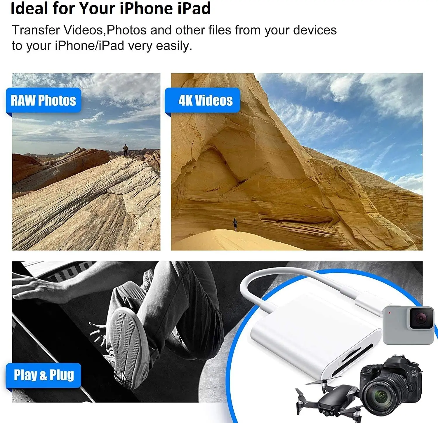 Lector de cámara de tarjeta SD iOS para iPhone Lector de tarjetas SD Lector de tarjetas de memoria Visor de cámara de rastreo Adaptador de tarjeta SD para iphone 14