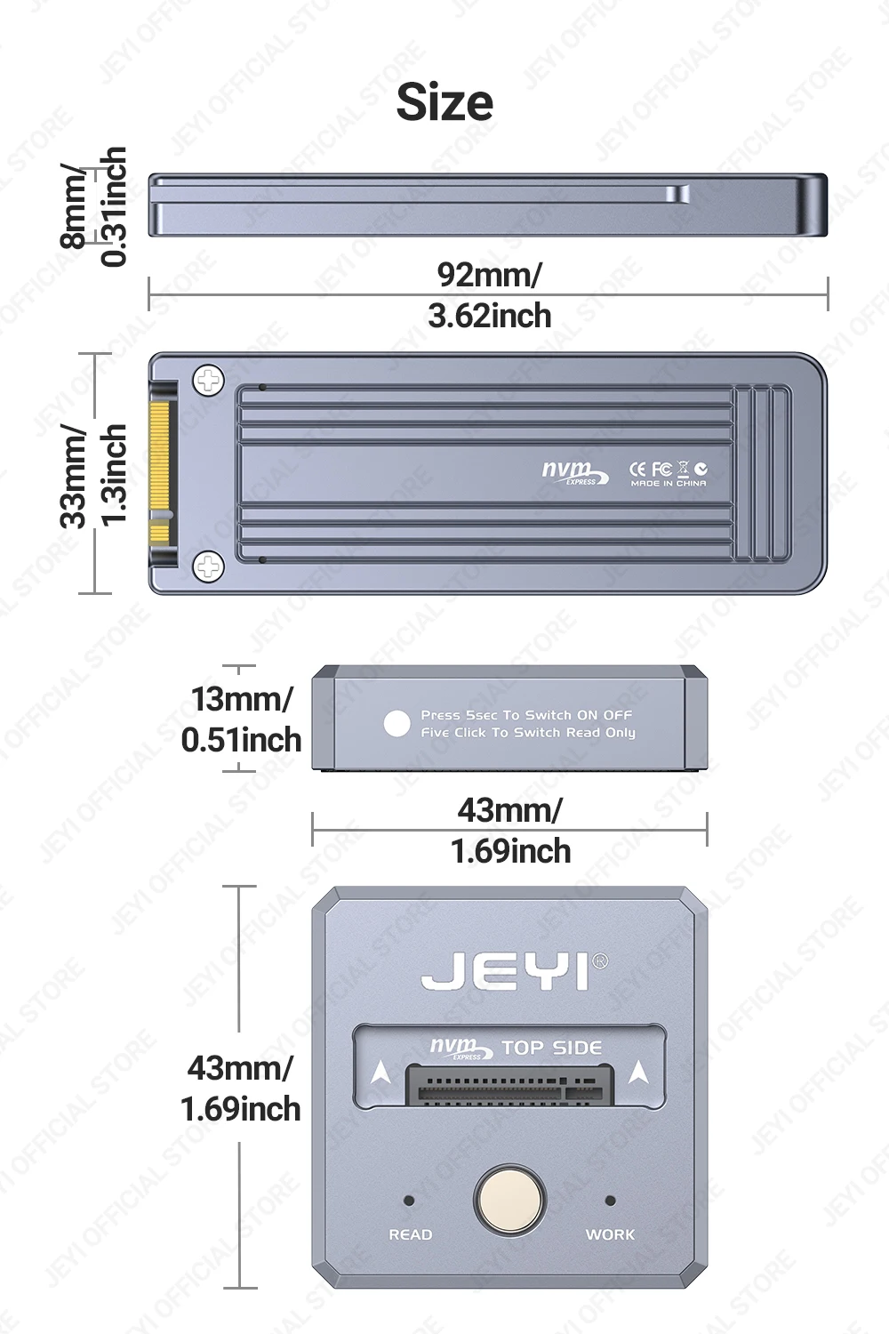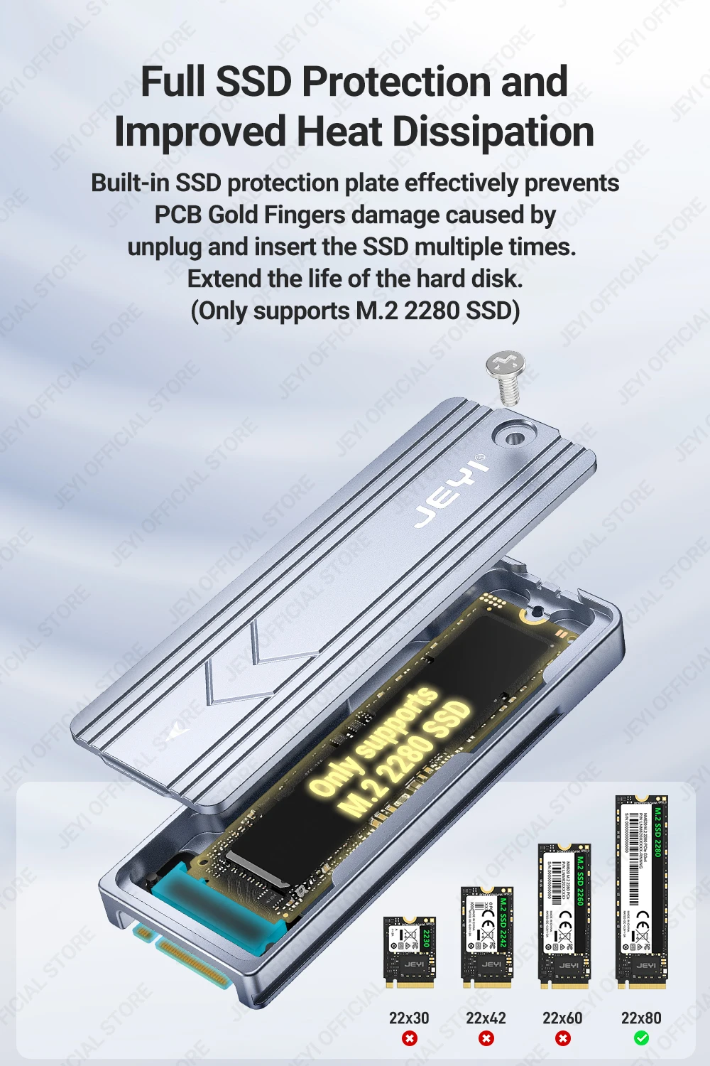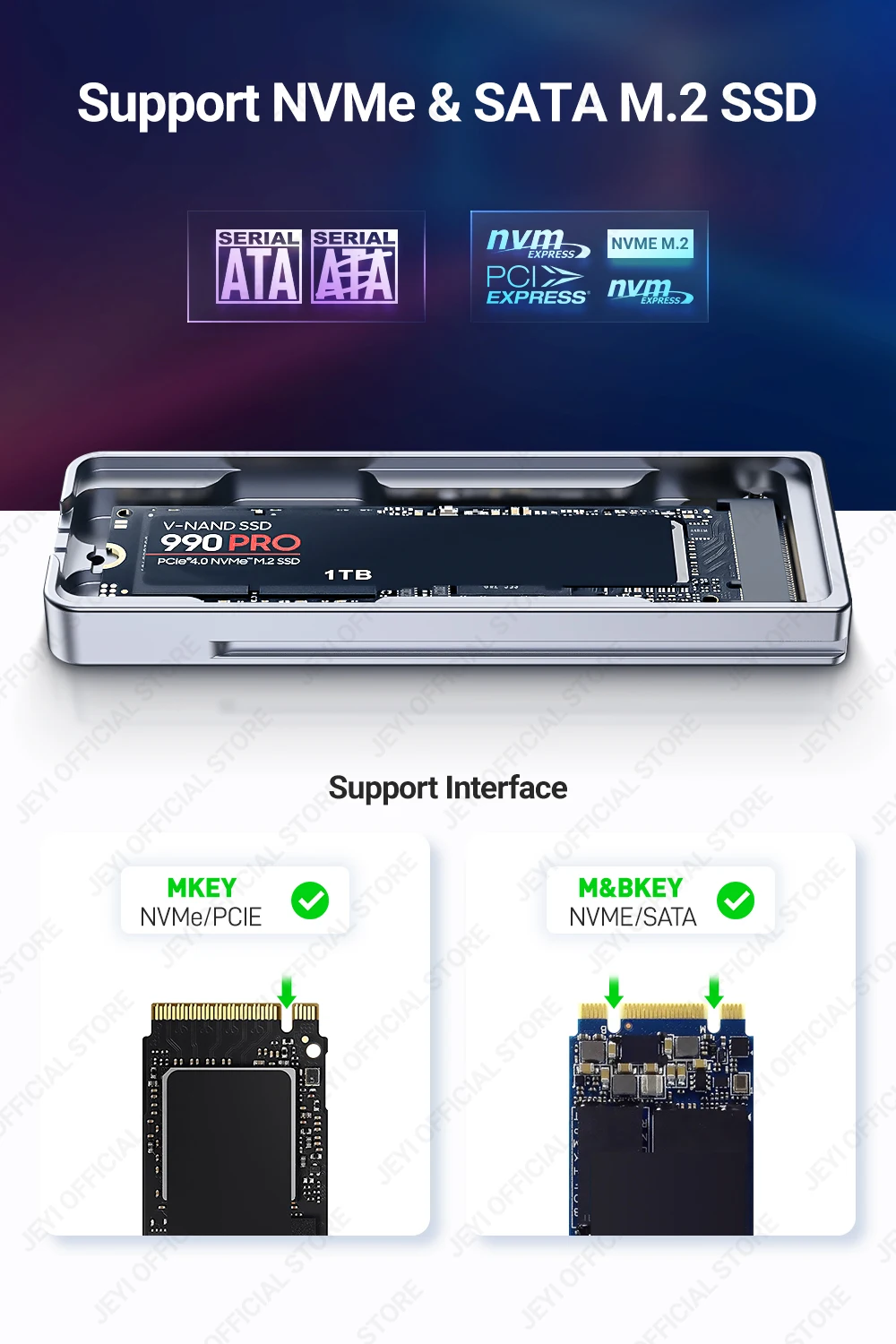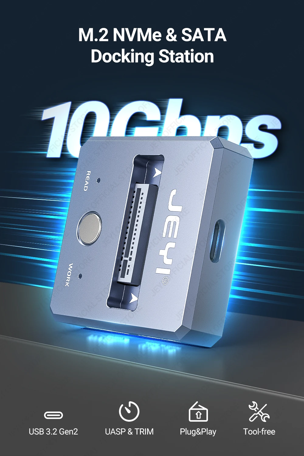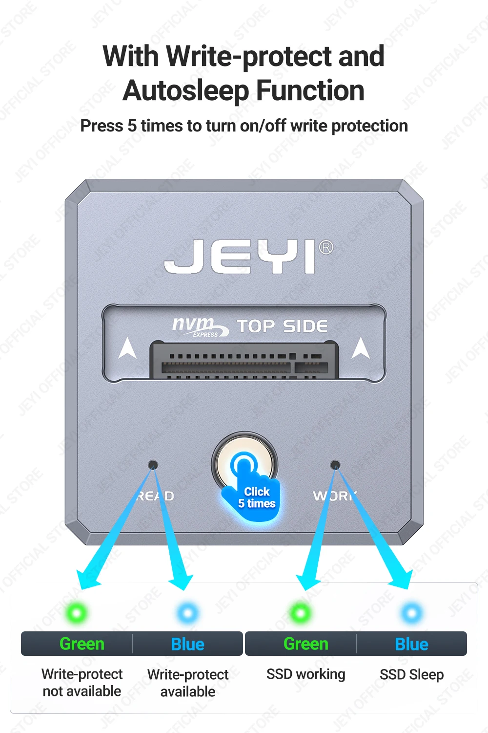 Comprar Lector JEYI M.2 SSD, NVMe y SATA a USB-C PCIe SSD estación de acoplamiento USB 3,2 adaptador de disco sólido de 10Gbps con protección de escritura