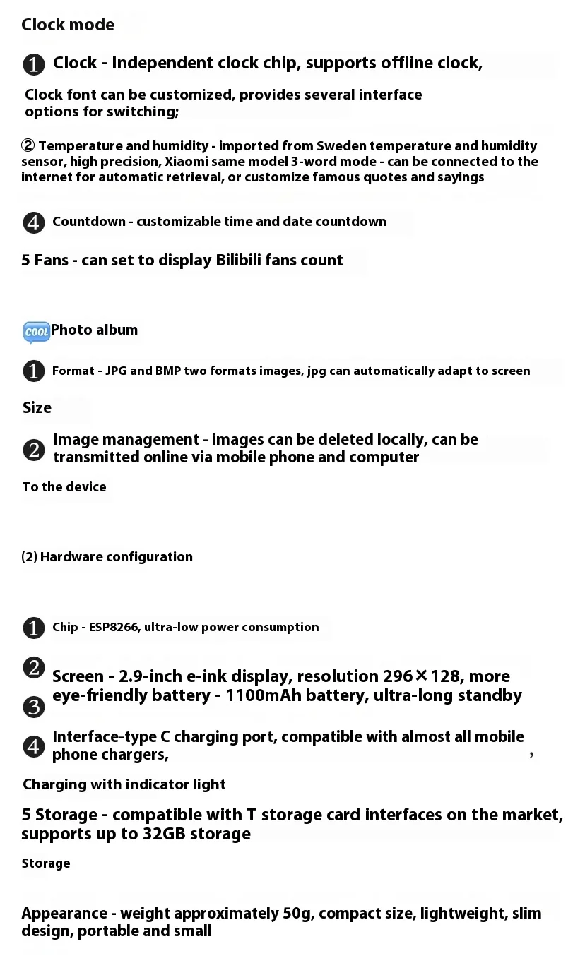 Lector de libros electrónicos Mini pantalla de tinta lector de palmas de 2,9 pulgadas retroiluminación papel electrónico personalizado 32GB portátil 296x128 píxeles tipo C lector