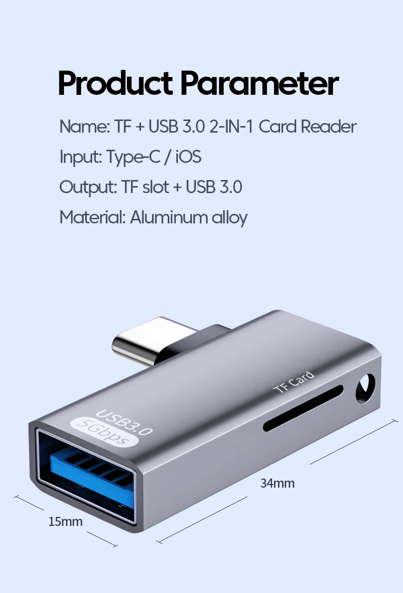 Lector de tarjetas 2 en 1, unidad Flash USB, lectura rápida, tarjeta de memoria TF tipo C a TF, adaptador de lector de tarjetas USB3.0 para iphone 15 16 PC y portátil