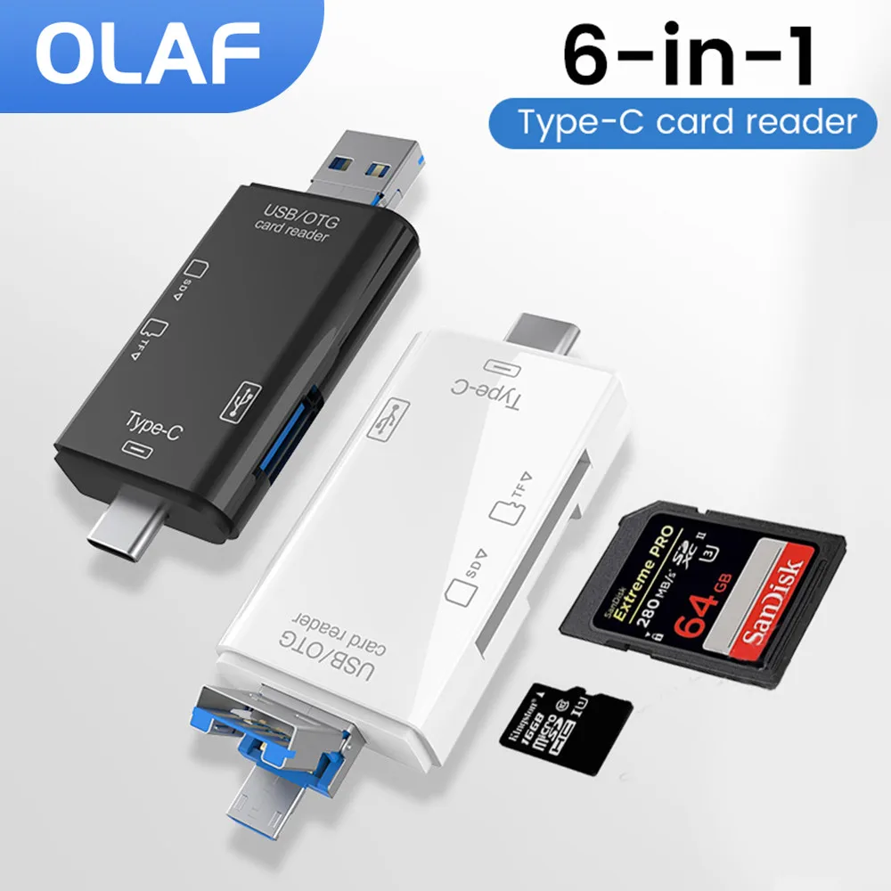 Lector de tarjetas 6 en 1 USB 3,0 tipo C a SD, adaptador Micro tarjeta de memoria TF SD para accesorios de ordenador portátil, unidad Flash OTG, lector de tarjetas inteligente