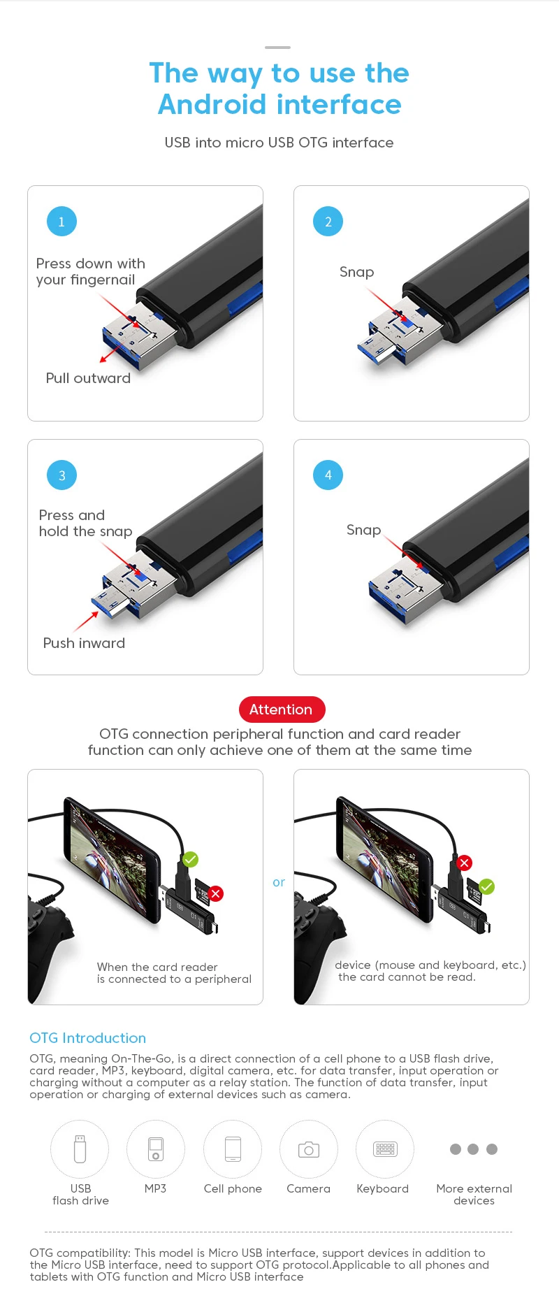 Comprar Lector de tarjetas 6 en 1 USB 3,0 tipo C a SD, adaptador Micro tarjeta de memoria TF SD para accesorios de ordenador portátil, unidad Flash OTG, lector de tarjetas inteligente