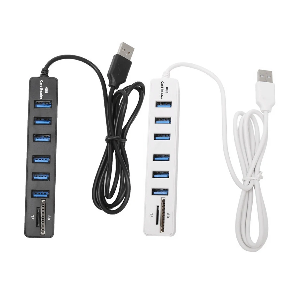Comprar Lector de tarjetas de 6 puertos USB 2,0, transmisión de alta velocidad, Memoria TF Hub, multipuerto divisor, Plug and Play, para ordenador portátil y PC
