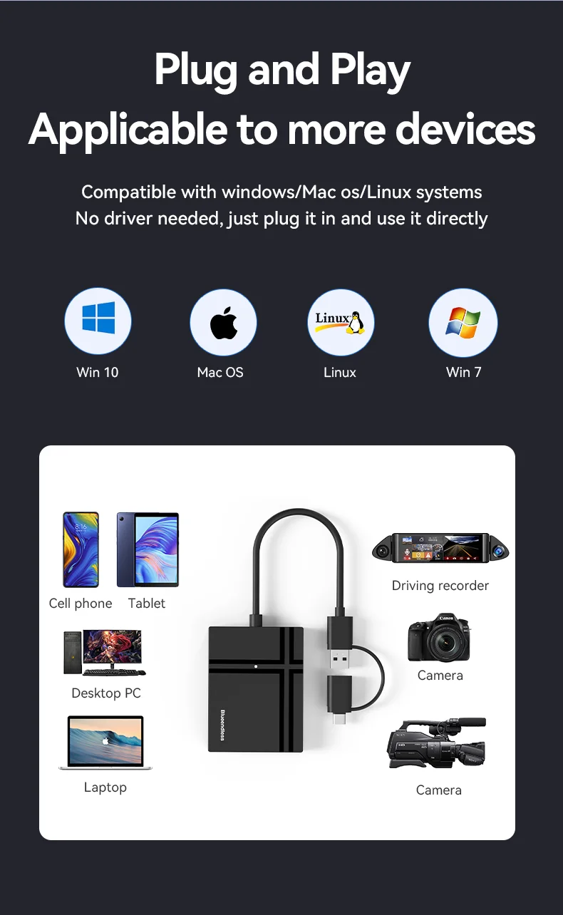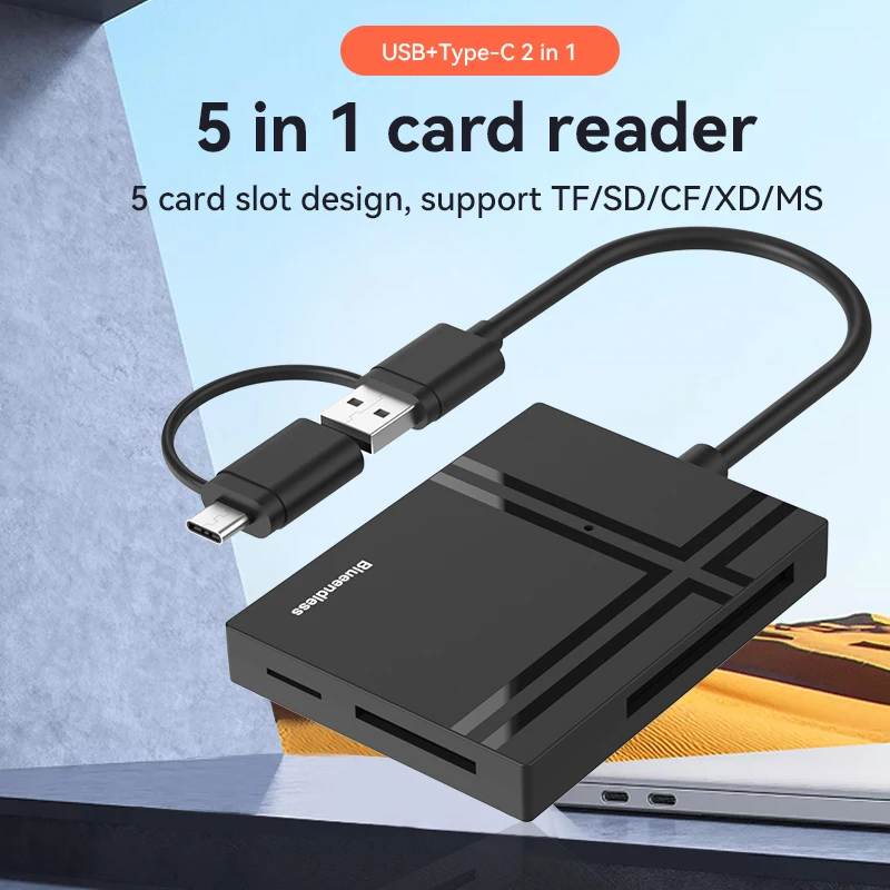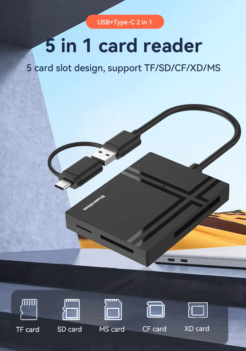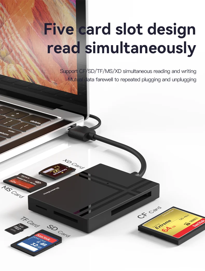 Comprar Lector de tarjetas Blueendless 5 en 1 divisor de tarjetas de memoria tipo C USB 3,0 5 puertos TF/SD/CF/XD/MS adaptador 5 en 1 USB C HUB para ordenador portátil