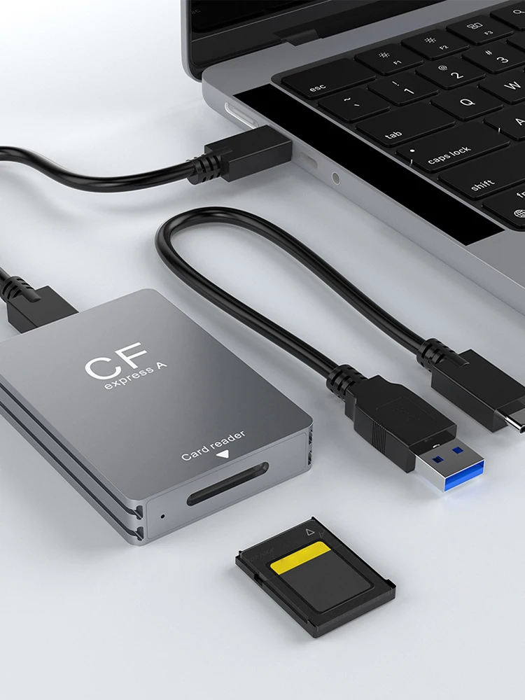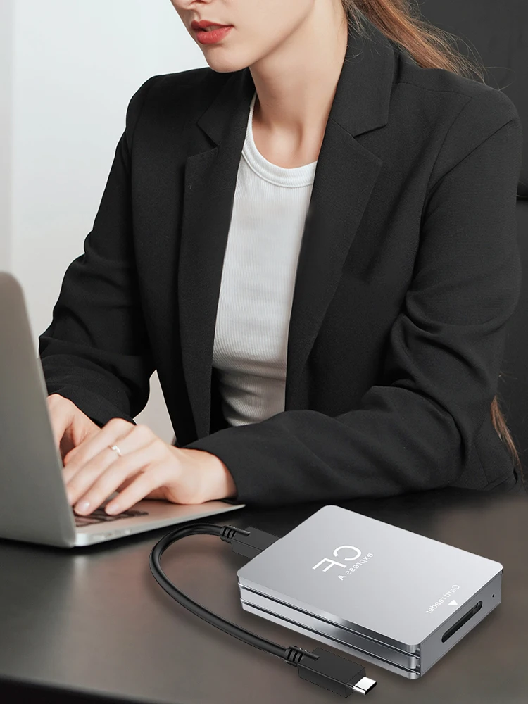 3.Fácil de usar y fácil de usar:El lector de tarjetas de memoria está diseñado para brindar simplicidad y facilidad de uso.Simplemente inserte su tarjeta CFexpress tipo A en el lector y conecte el lector a un puerto USB de su computadora u otros dispositivos para iniciar rápidamente la transferencia de datos, sin necesidad de pasos de instalación complicados.