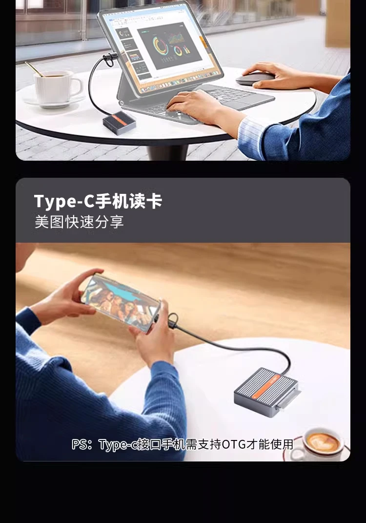 Lectura de tarjetas de teléfono móvil tipo C: comparta rápidamente hermosas imágenes (Los teléfonos con interfaz tipo C deben admitir el uso de OTG);