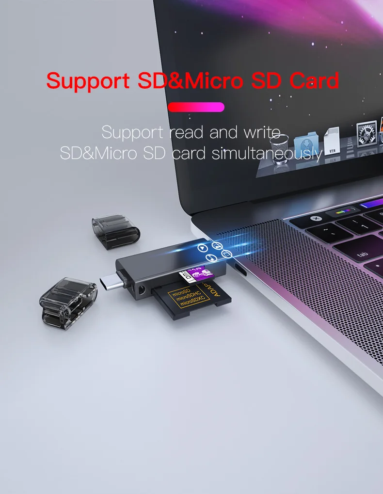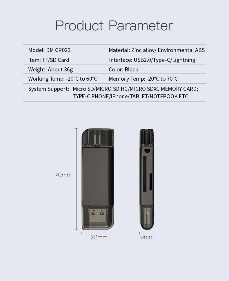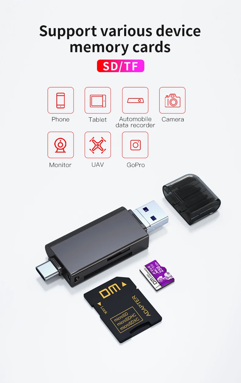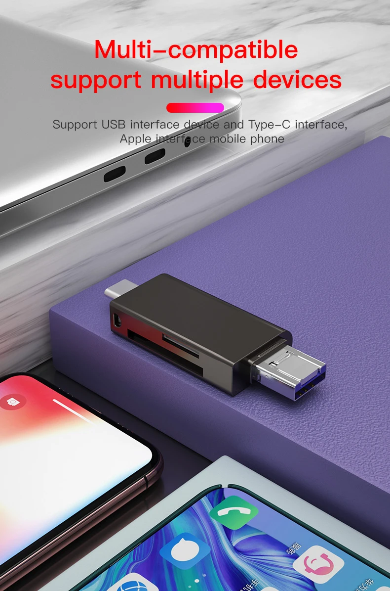 Lector de tarjetas DM 5 en 1 CR023 SD/TF Lector de tarjetas Muldti con USB relámpago y interfaz micro usb