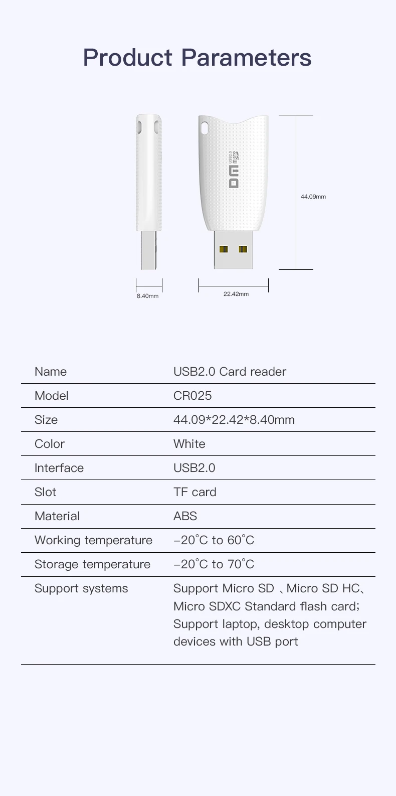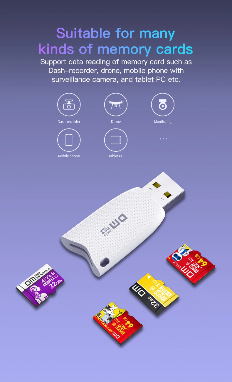 Comprar Lector de tarjetas DM CR025 con ranura para tarjeta TF innovadora, cambia el lector de tarjetas a una unidad flash usb para ordenador o coche
