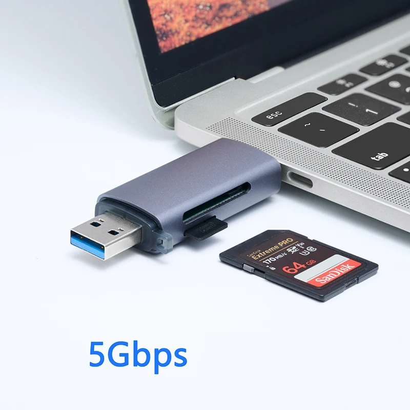 Comprar Lector de tarjetas Dual OTG tipo C, USB 3,0, Micro USB, 5Gbps, alta velocidad, SD, TF, escritor, aluminio, teléfono móvil, portátil, PC, adaptador de tarjeta de memoria