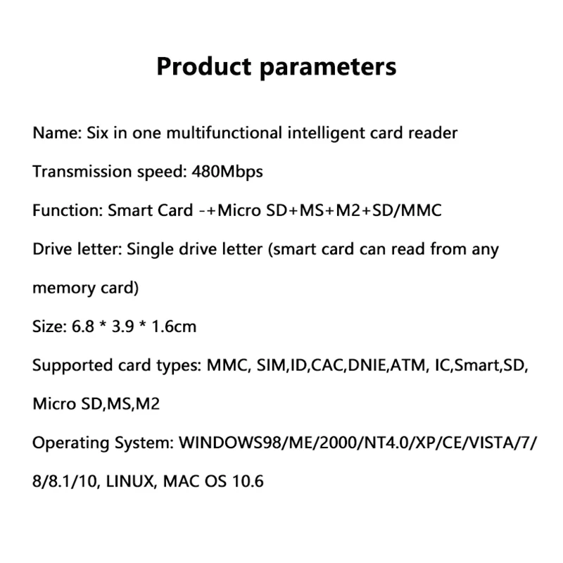 1.Versatilidad: el lector de tarjetas no solo puede leer información de la tarjeta de identificación, sino también tarjetas bancarias.No se limita a una sola función, te ayuda a resolver más problemas.