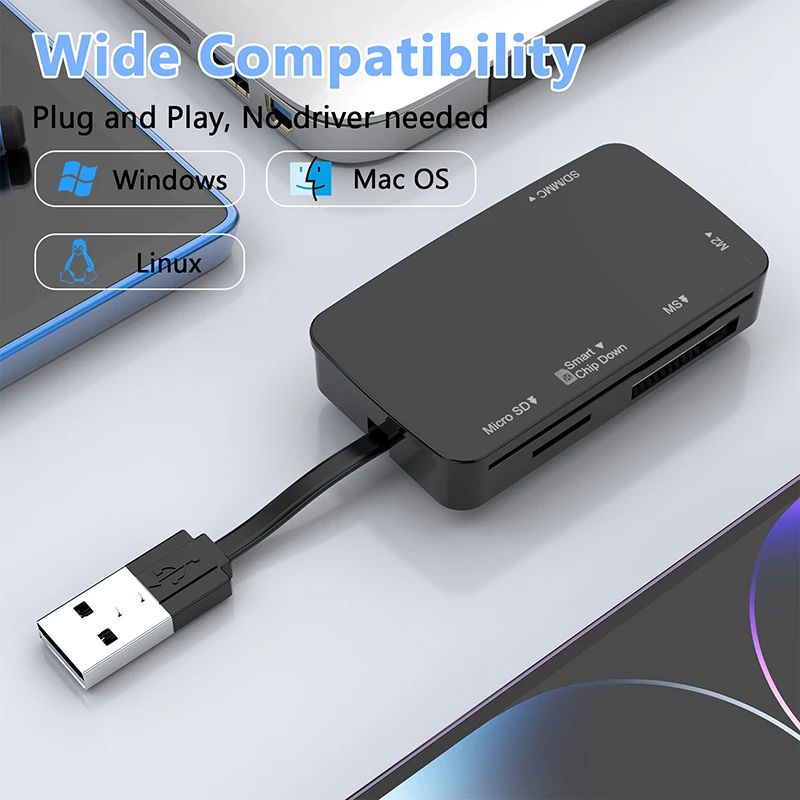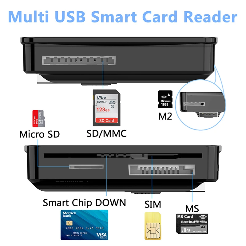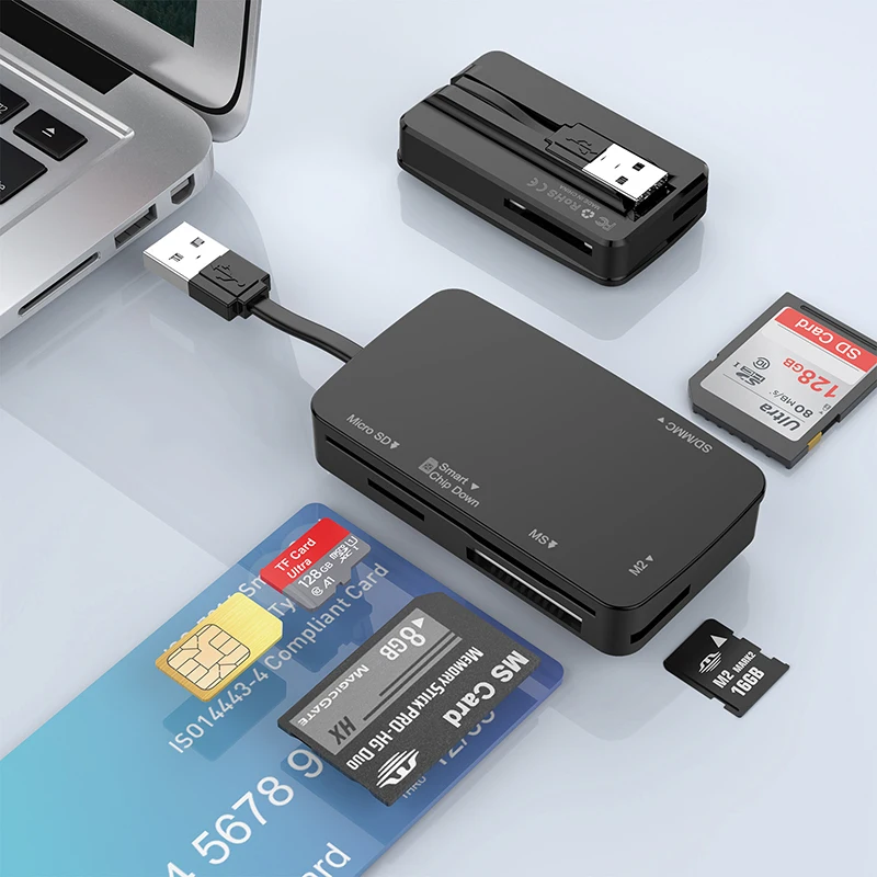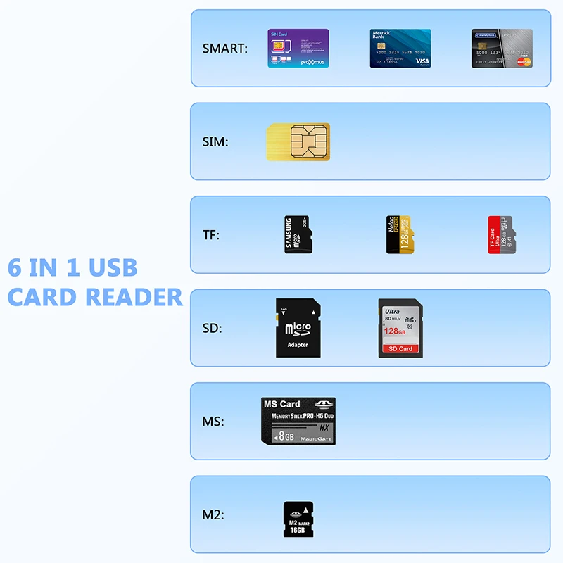 Comprar Lector de tarjetas inteligentes USB IC 6 en 1 para tarjeta de identificación, tarjeta bancaria SD MMC Micro SD MS, adaptador de tarjeta SIM para ordenador portátil, PC, fichas de almacenamiento