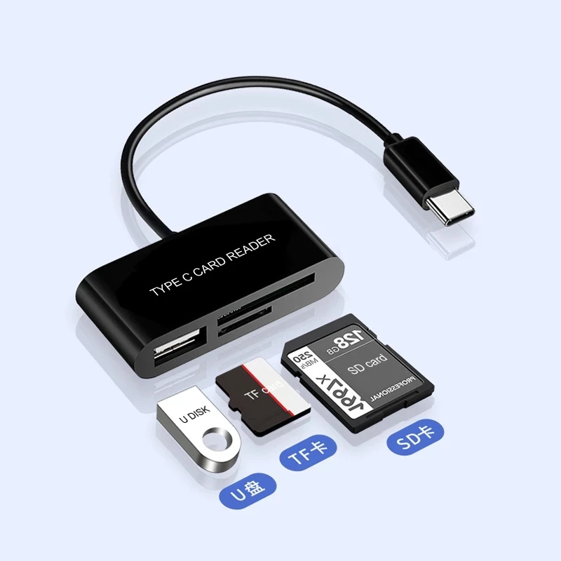 3 en 1 USB tipo C Micro SD /TF adaptador de lector de tarjetas para Macbook y teléfono OTG